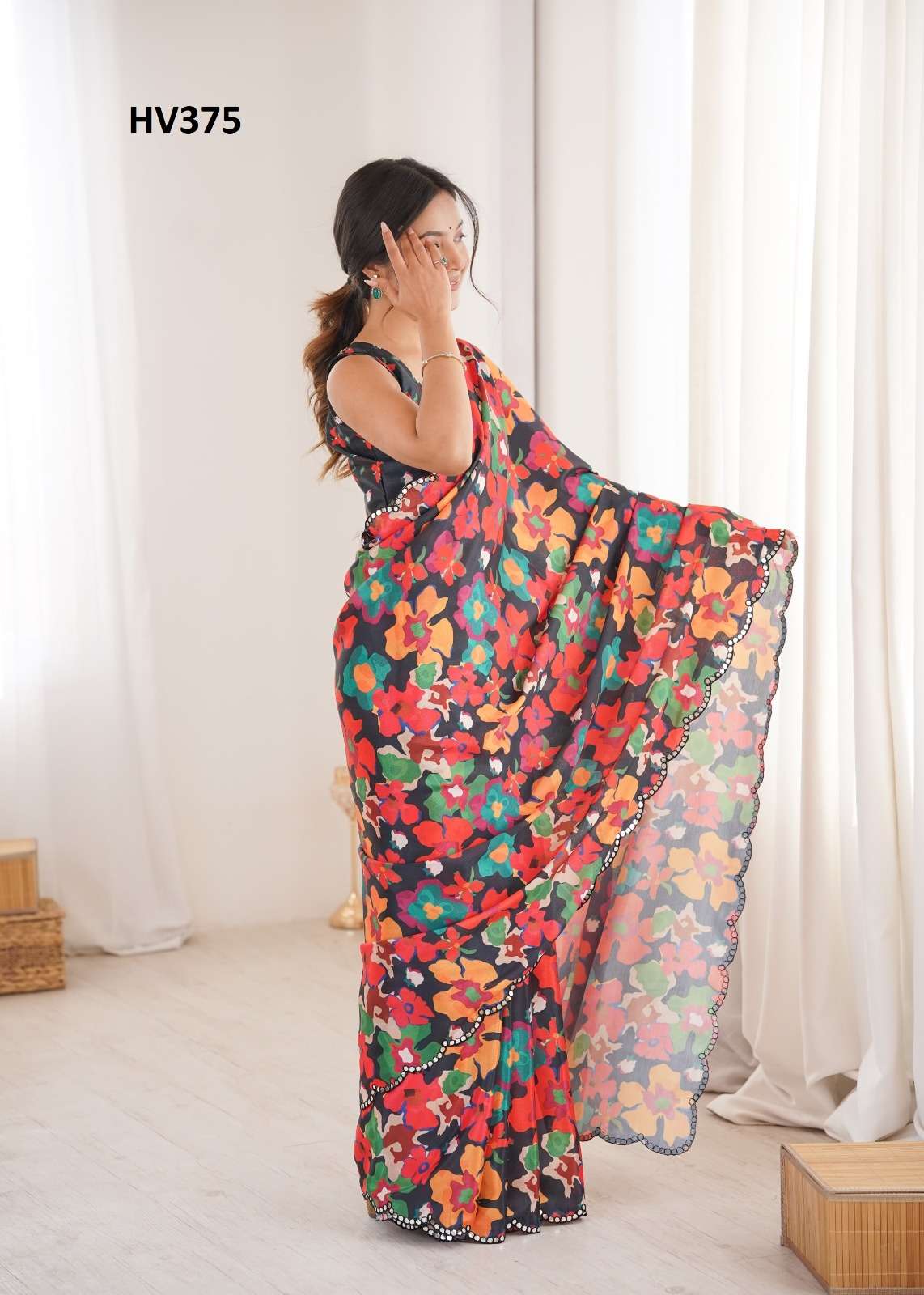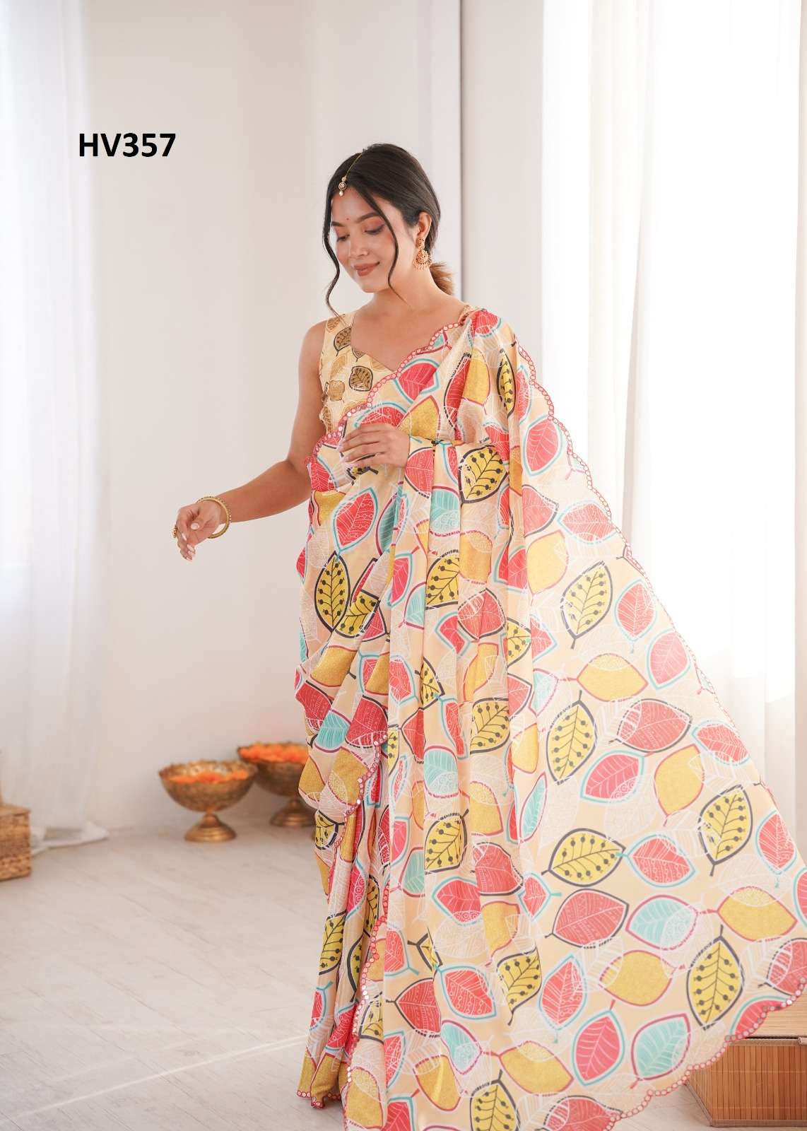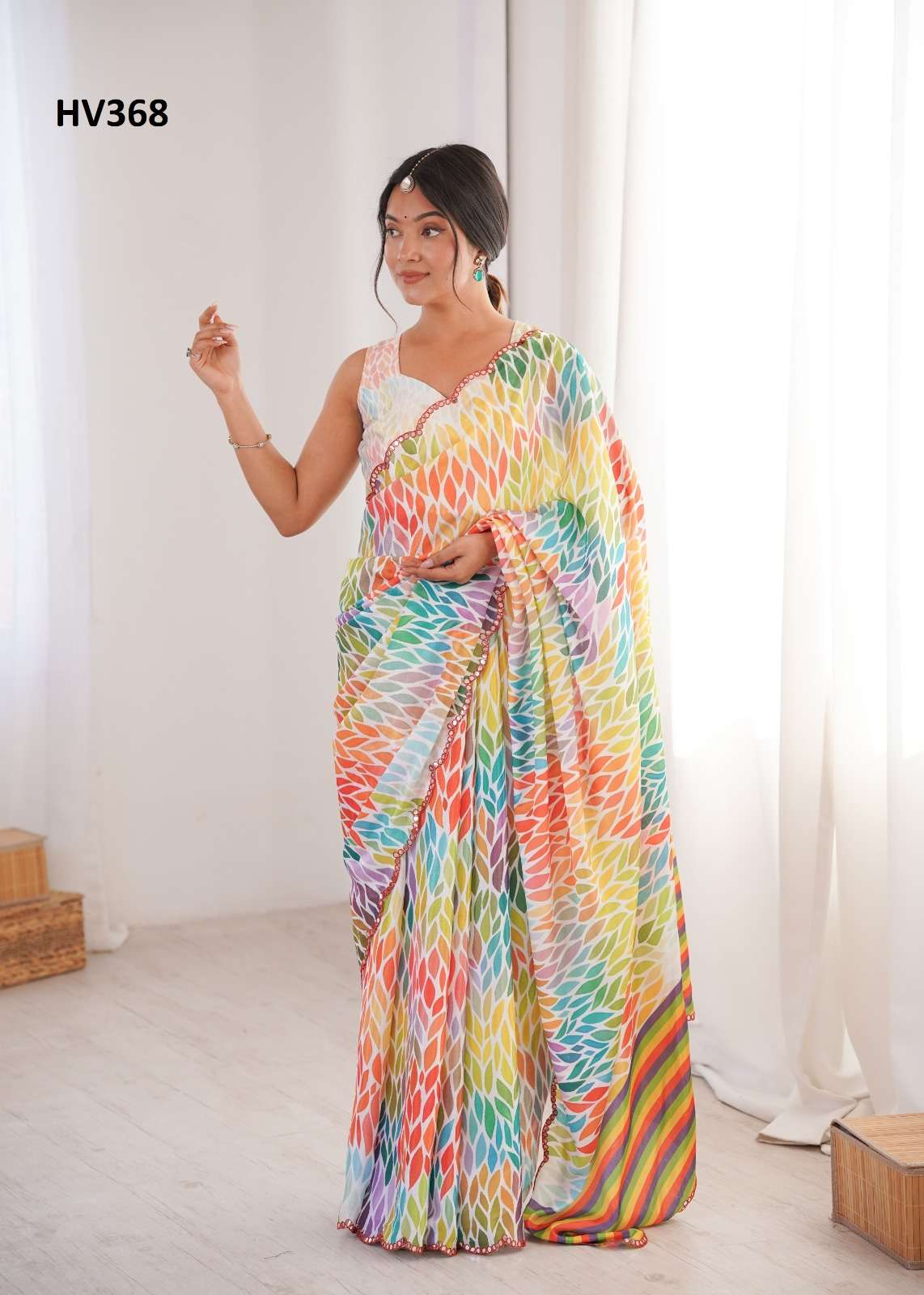 *Fabric* *saree-Chinnon* *Blouse-Chinnon*