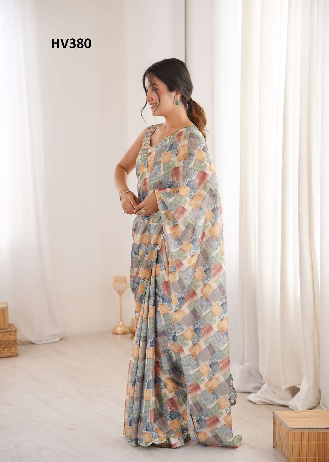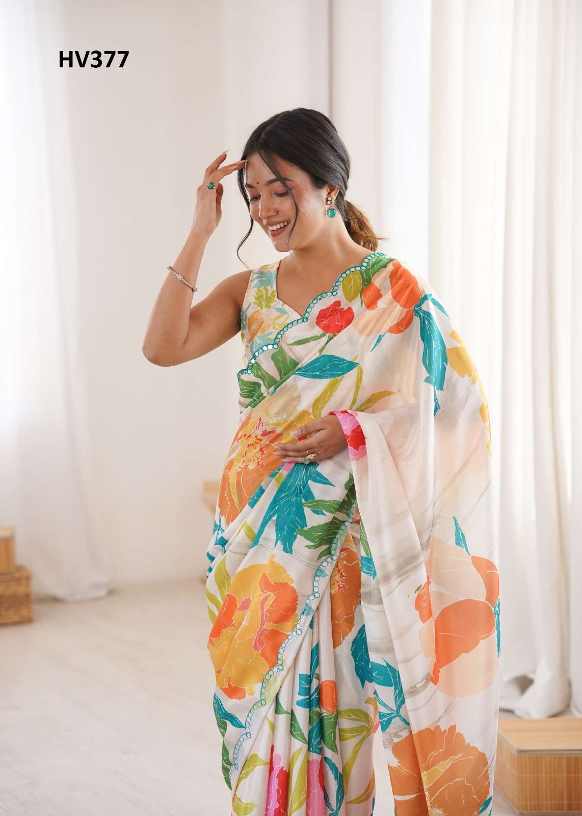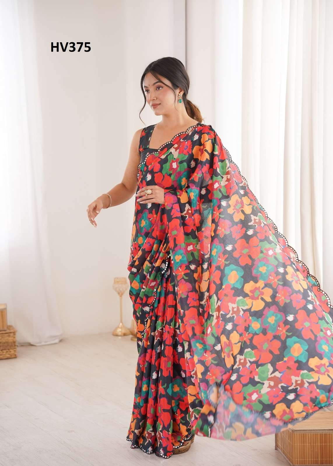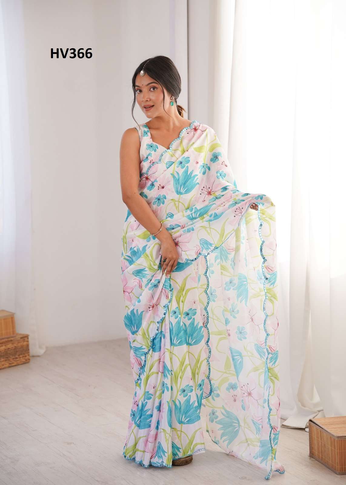 *Fabric* *saree-Chinnon* *Blouse-Chinnon*