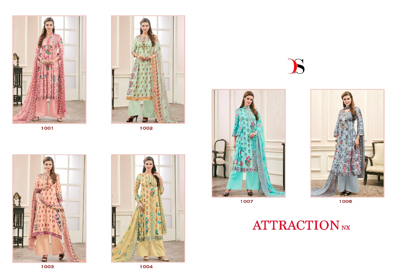 Buy Online Deepsy Attrection Nx 1001 Series Cotton Satin Suit Dealer 6 Pcs of Full Catalogue at Wholesale Price. Looking for Deepsy Attrection Nx 1001 Series Cotton Satin Suit Dealer Full Catalouge at Best Price? Buy Now Deepsy Attrection Nx 1001 Series Cotton Satin Suit Dealer at Wholesale Rate of Rs 4170 with Total 6 Pcs from authroized dealer and supplier of DEEPSY Brand. Cost of Each piece is just only Rs 695 which is very low and affordable price to resale the product in your retail store ,This is Surat based Wholesale Supplier & Dealer of DEEPSY Brand. Click on Brand name to Know more about DEEPSY Brand's products.Call or Whatsapp on 9898838984 for booking or enquiry