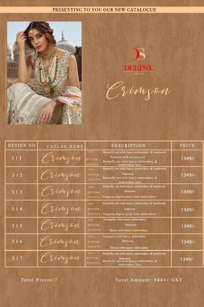 Deepsy Crimson Series 311 To 317 Pakistani Suits Wholesale Supplier Gujarat