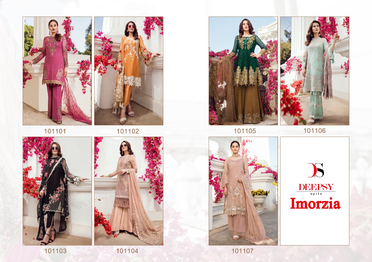 Buy Online Deepsy Imorzia 101101 Series Pakistani Style Salwar Kameez 7 Pcs of Full Catalogue at Wholesale Price. Looking for Deepsy Imorzia 101101 Series Pakistani Style Salwar Kameez Full Catalouge at Best Price? Buy Now Deepsy Imorzia 101101 Series Pakistani Style Salwar Kameez at Wholesale Rate of Rs 8393 with Total 7 Pcs from authroized dealer and supplier of DEEPSY Brand. Cost of Each piece is just only Rs 1199 which is very low and affordable price to resale the product in your retail store ,This is Surat based Wholesale Supplier & Dealer of DEEPSY Brand. Click on Brand name to Know more about DEEPSY Brand's products.Call or Whatsapp on 9898838984 for booking or enquiry