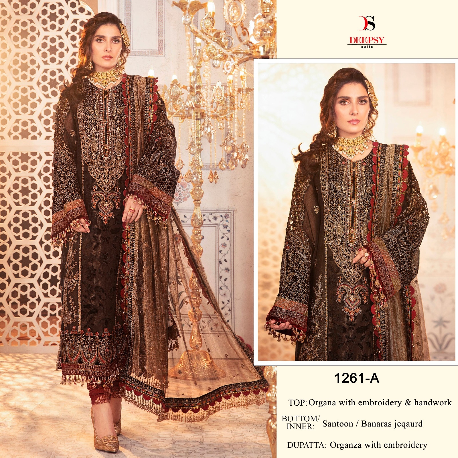*D no.: 1261 ABCD by DEEPSY SUITS Top -organa with embroidery & handwork Bot - Santoon / Banaras jeqaurd Dup - organza with embroidery *Rate - 1250/-* Gst ship extfa *_Quilted Fabric Used For best quality results_* 100+Single |