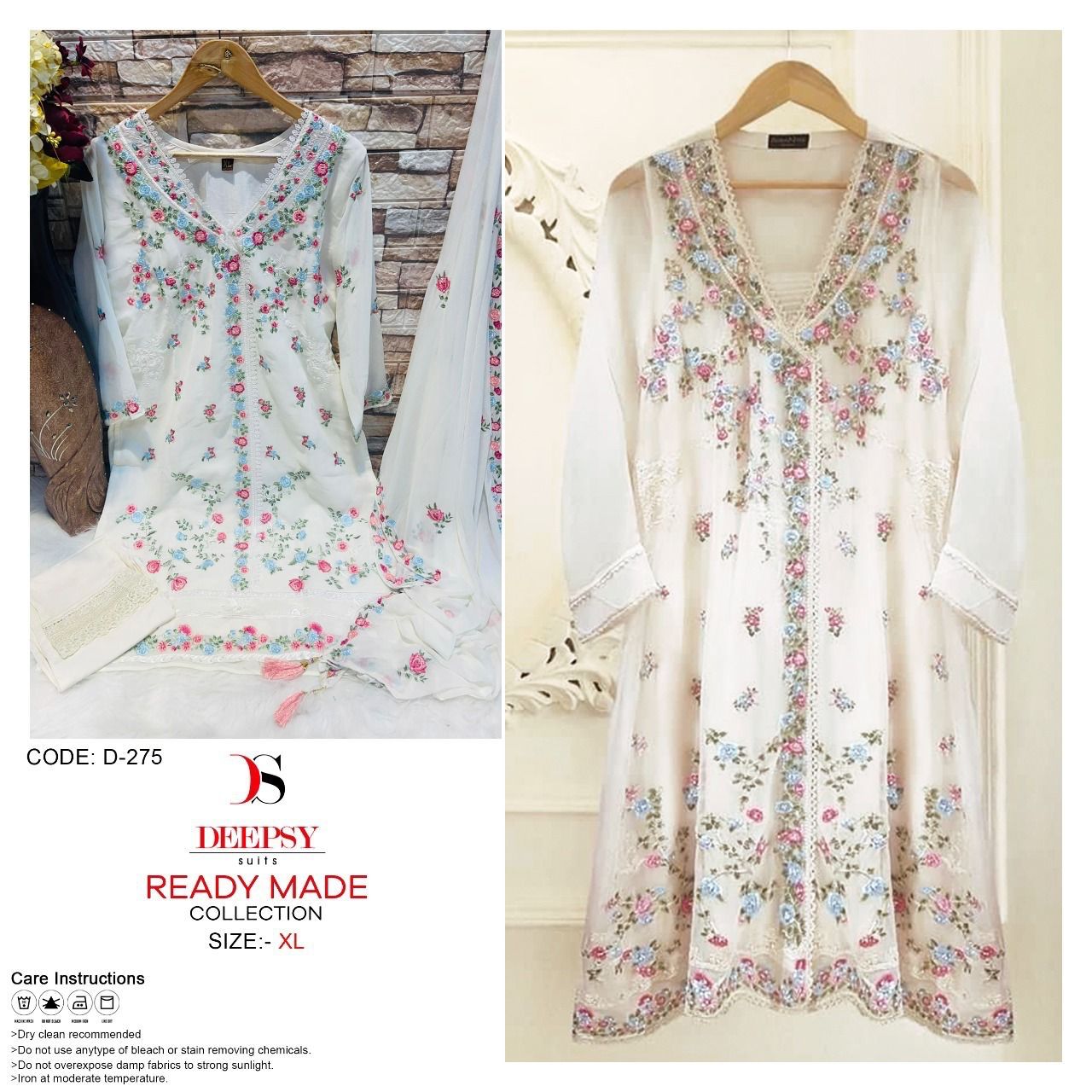 Buy Online Deepsy Suits D No D 275 By Ready To Wear Collection 5 Pcs of Full Catalogue at Wholesale Price. Looking for Deepsy Suits D No D 275 By Ready To Wear Collection Full Catalouge at Best Price? Buy Now Deepsy Suits D No D 275 By Ready To Wear Collection at Wholesale Rate of Rs 7000 with Total 5 Pcs from authroized dealer and supplier of DEEPSY Brand. Cost of Each piece is just only Rs 1400 which is very low and affordable price to resale the product in your retail store ,This is Surat based Wholesale Supplier & Dealer of DEEPSY Brand. Click on Brand name to Know more about DEEPSY Brand's products.Call or Whatsapp on 9898838984 for booking or enquiry