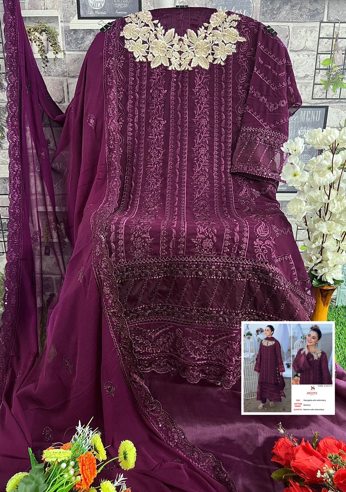 Design no.D-2010 ABCD Fabric: Top: Georgette with embroidery& (semi stich ) Bottam:- Sentoon Dupatta : Nazmin with embroidery *Rate :1140/-* GST ship extra *Special pouch packing* *_Quilted Fabric Used For best quality results_* 100+single |