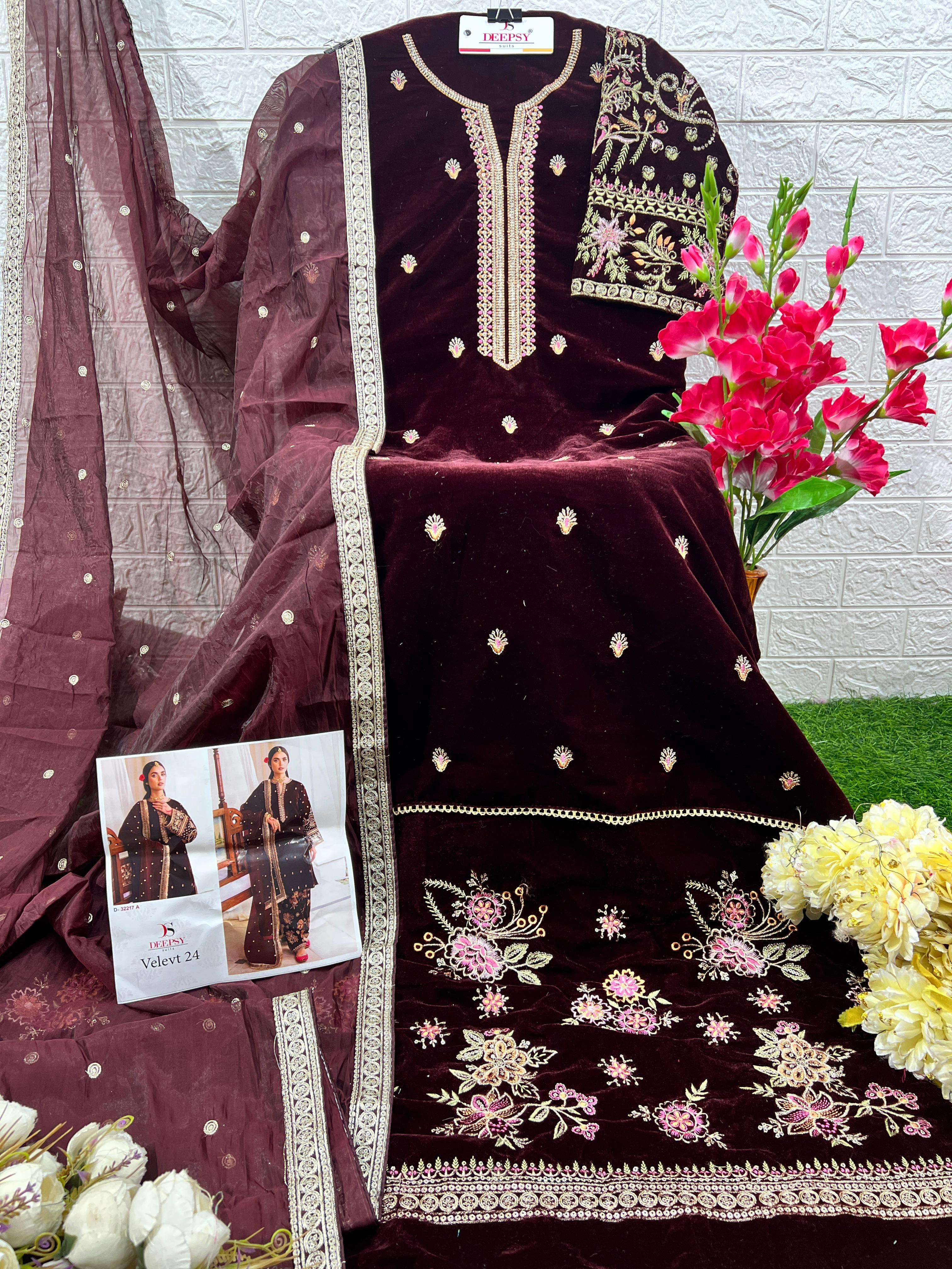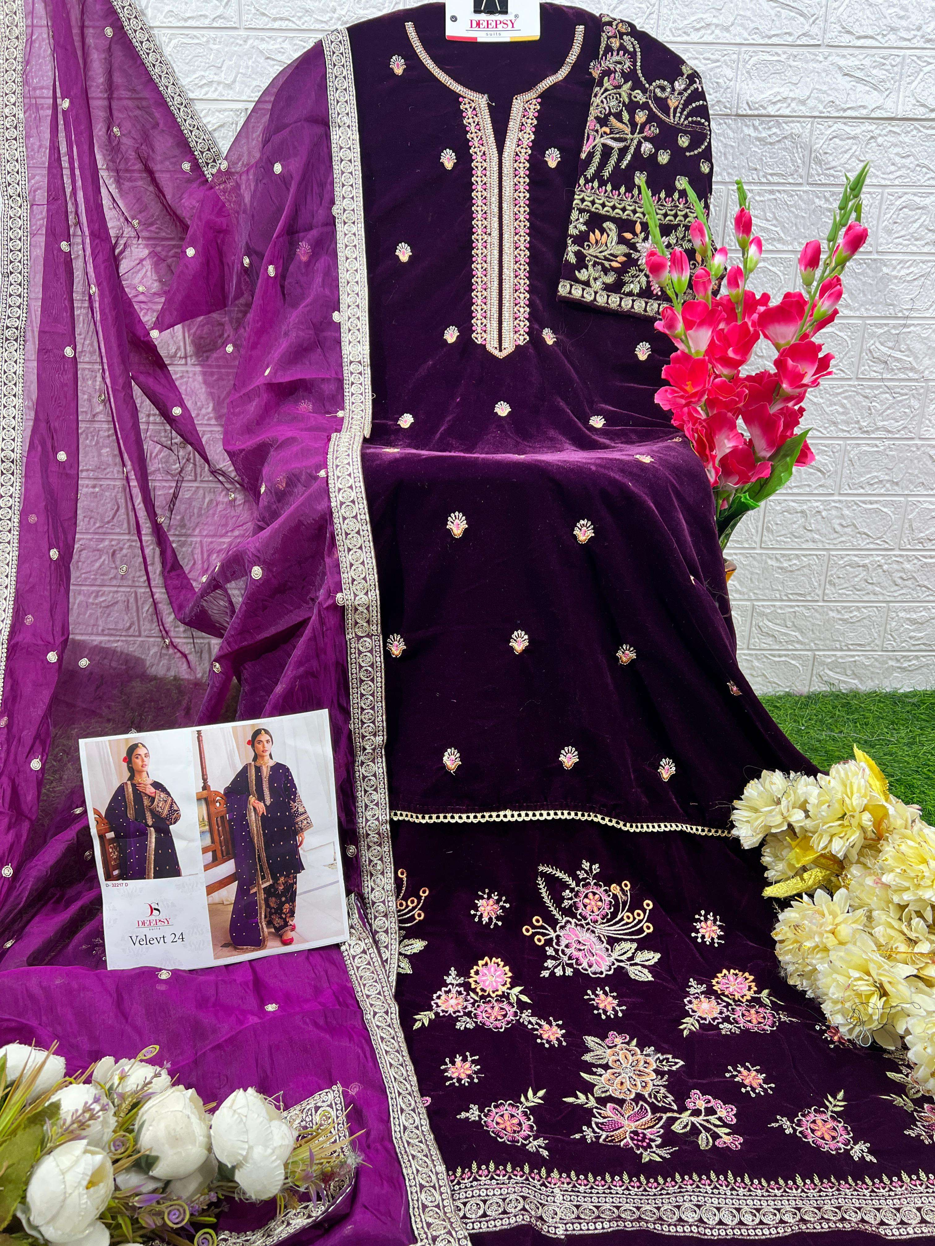 DEISGN OF VELVET 24 D 32217 ABCD by DEEPSY SUIT collection manufacturers surat