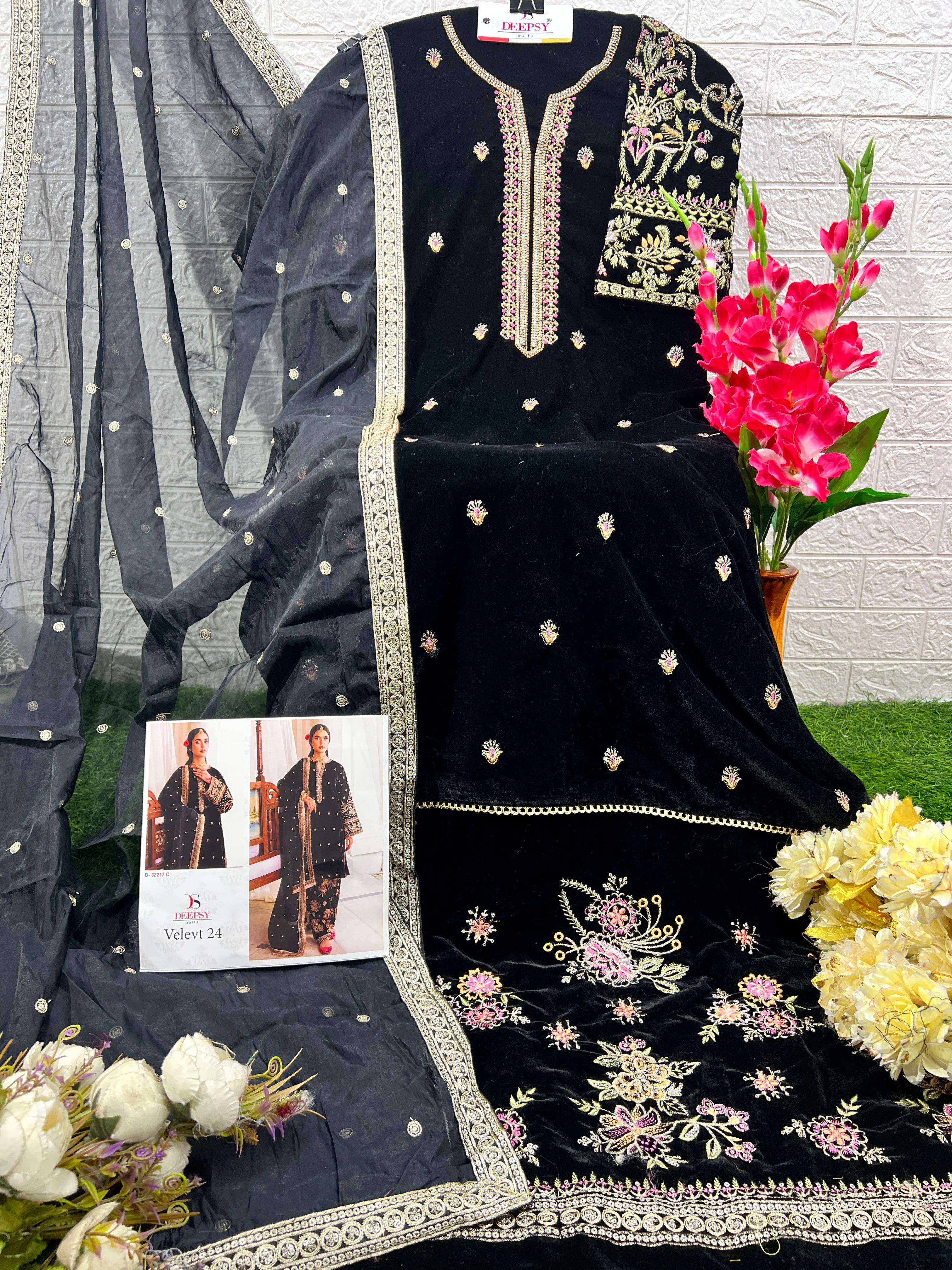 Buy Online DEISGN OF VELVET 24 D 32217 ABCD by DEEPSY SUIT collection manufacturers surat 4 Pcs of Full Catalogue at Wholesale Price. Looking for DEISGN OF VELVET 24 D 32217 ABCD by DEEPSY SUIT collection manufacturers surat Full Catalouge at Best Price? Buy Now DEISGN OF VELVET 24 D 32217 ABCD by DEEPSY SUIT collection manufacturers surat at Wholesale Rate of Rs 5996 with Total 4 Pcs from authroized dealer and supplier of DEEPSY Brand. Cost of Each piece is just only Rs 1499 which is very low and affordable price to resale the product in your retail store ,This is Surat based Wholesale Supplier & Dealer of DEEPSY Brand. Click on Brand name to Know more about DEEPSY Brand's products.Call or Whatsapp on 9898838984 for booking or enquiry