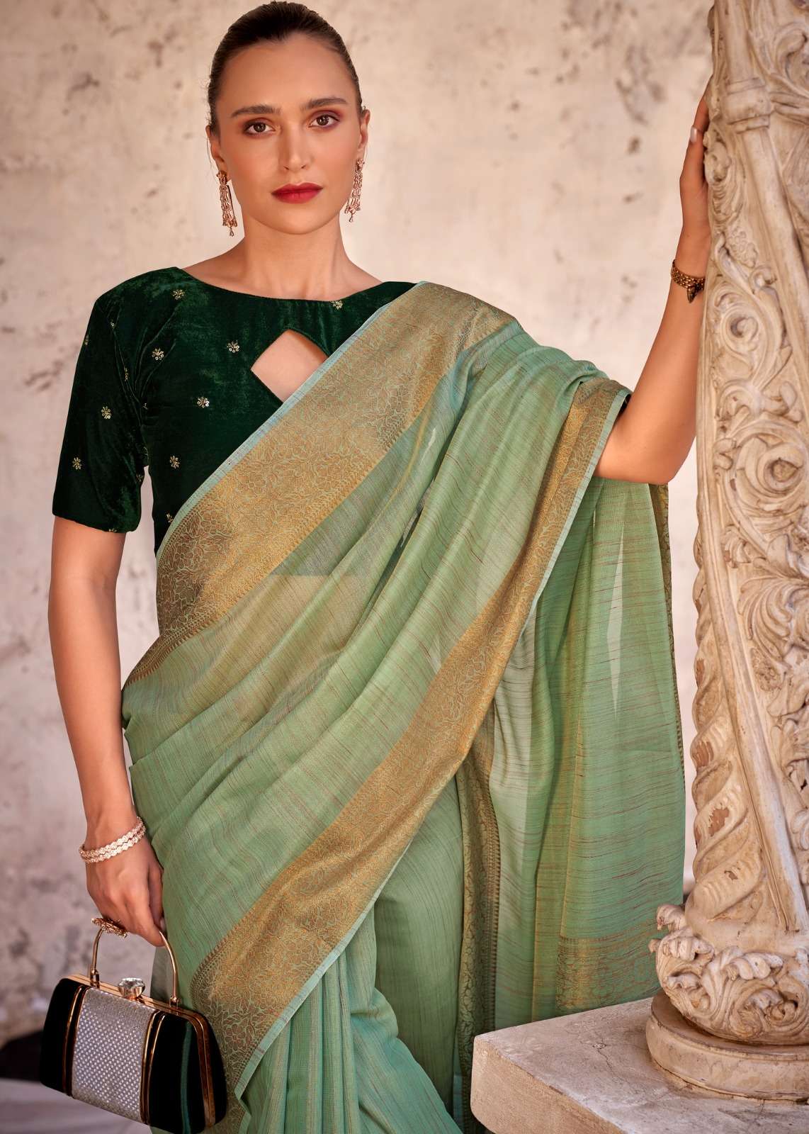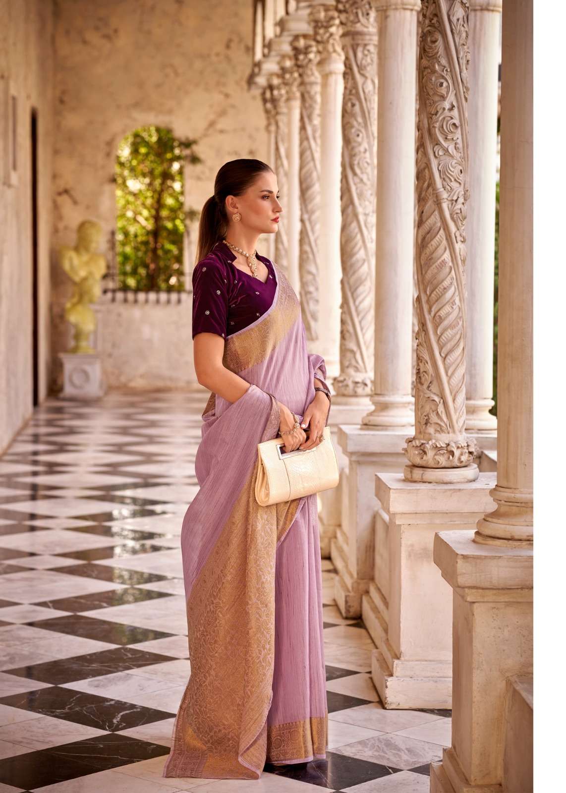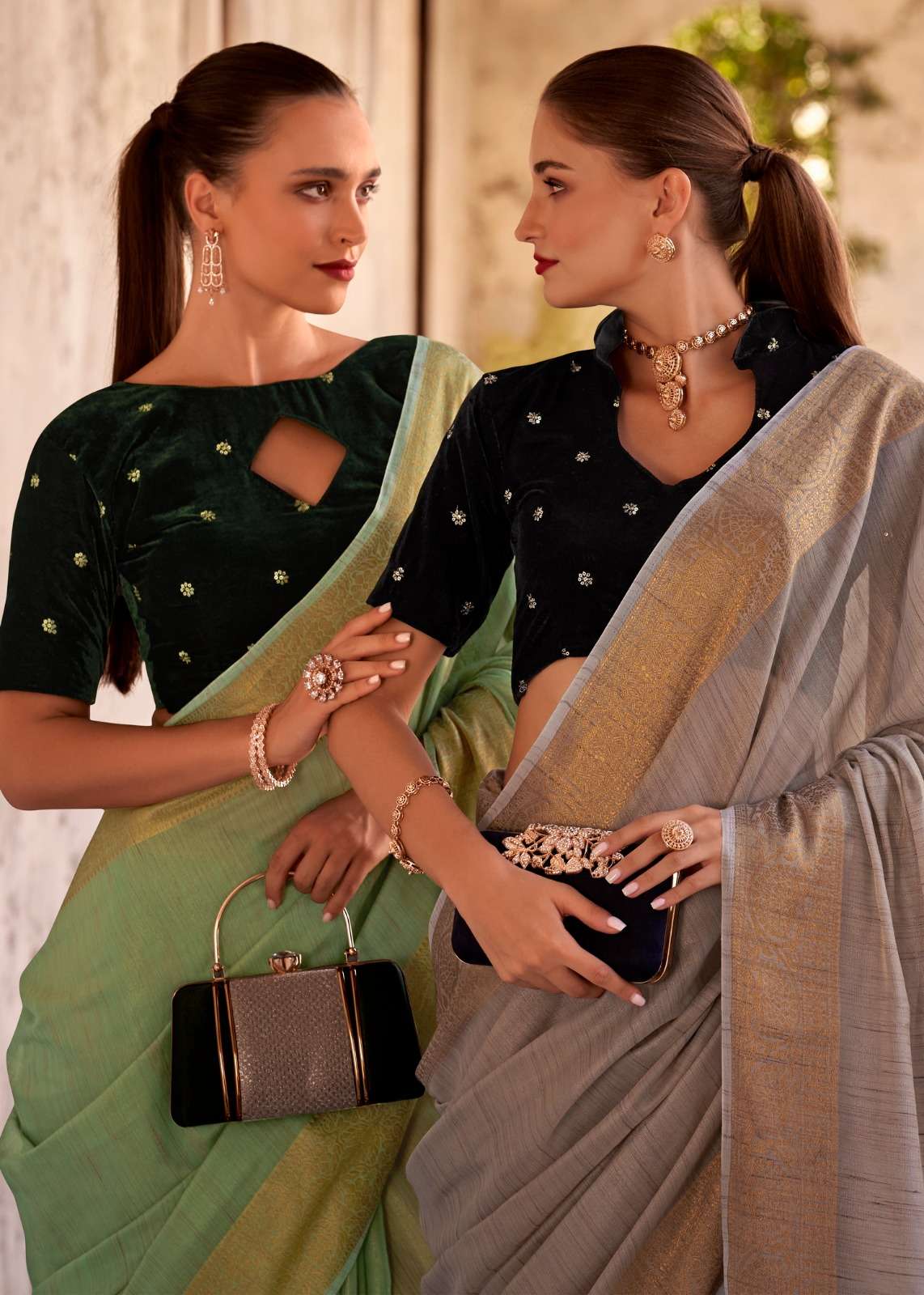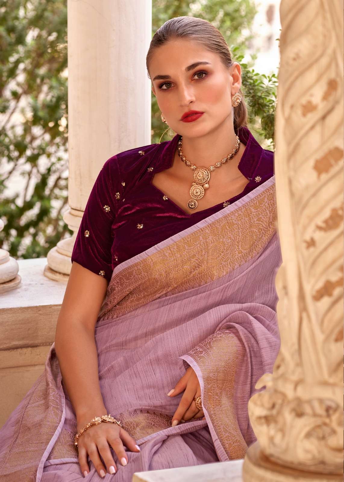 ▶️Catalog - *Delicate silk* ➡️Rate - *1199+5%* ▶️Fabric - *Tissue Linen With Zari Weaving (Dual Blouse Concept)* *1 Running &* *1 Velvet embroidery work*