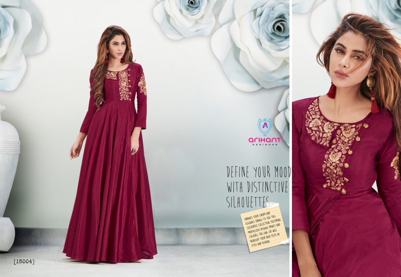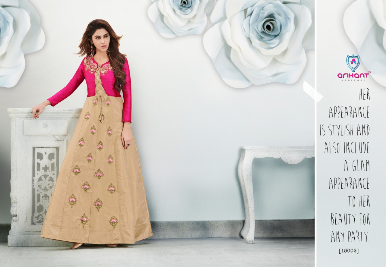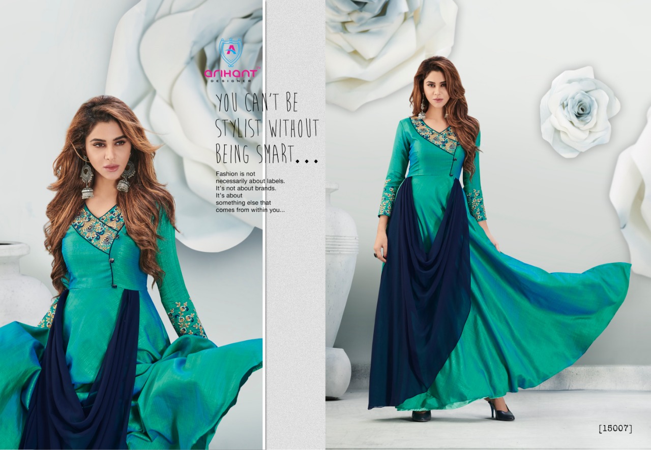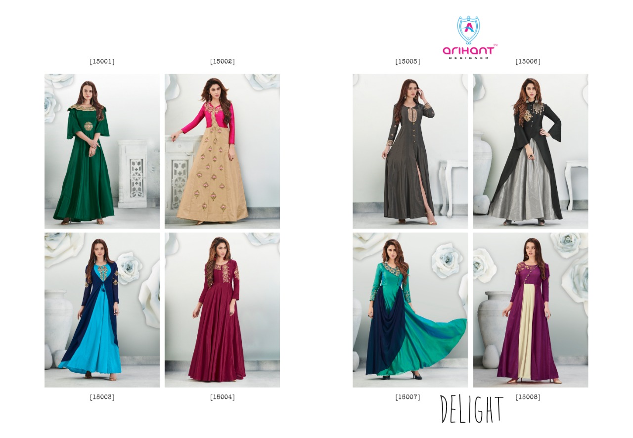 Buy Online Delight By Arihant Nx 15001 Series Designer Party Wear Gown Style Kurti Collection Wholesale Dealer Surat 8 Pcs of Full Catalogue at Wholesale Price. Looking for Delight By Arihant Nx 15001 Series Designer Party Wear Gown Style Kurti Collection Wholesale Dealer Surat Full Catalouge at Best Price? Buy Now Delight By Arihant Nx 15001 Series Designer Party Wear Gown Style Kurti Collection Wholesale Dealer Surat at Wholesale Rate of Rs 7960 with Total 8 Pcs from authroized dealer and supplier of ARIHANT NX Brand. Cost of Each piece is just only Rs 995 which is very low and affordable price to resale the product in your retail store ,This is Surat based Wholesale Supplier & Dealer of ARIHANT NX Brand. Click on Brand name to Know more about ARIHANT NX Brand's products.Call or Whatsapp on 9898838984 for booking or enquiry
