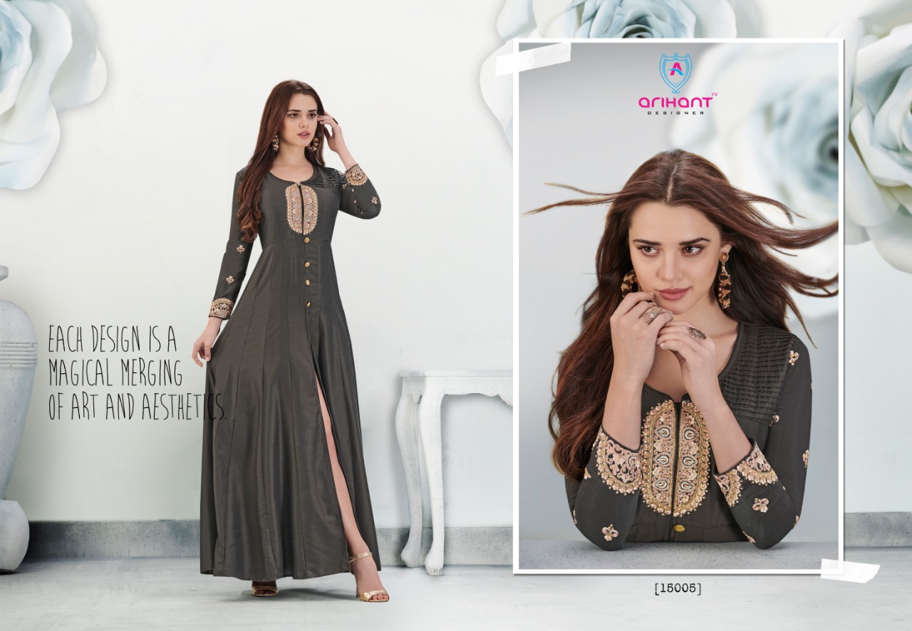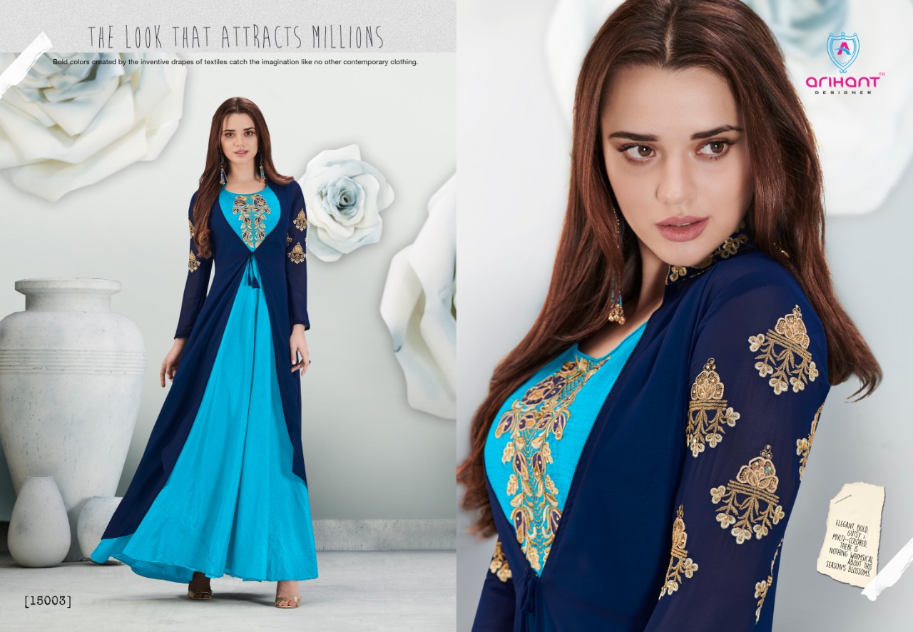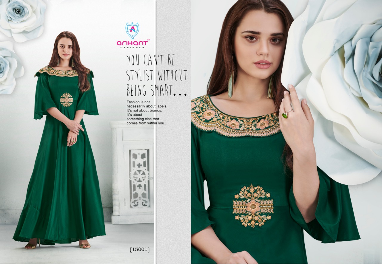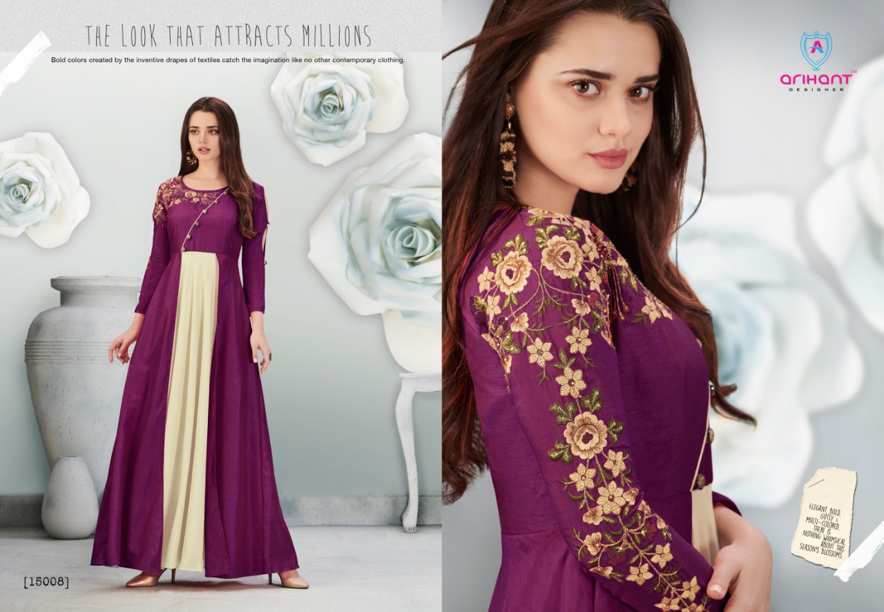 Buy Online Delight By Arihant Nx 15001 Series Designer Party Wear Gown Style Kurti Collection Wholesale Dealer Surat 8 Pcs of Full Catalogue at Wholesale Price. Looking for Delight By Arihant Nx 15001 Series Designer Party Wear Gown Style Kurti Collection Wholesale Dealer Surat Full Catalouge at Best Price? Buy Now Delight By Arihant Nx 15001 Series Designer Party Wear Gown Style Kurti Collection Wholesale Dealer Surat at Wholesale Rate of Rs 7960 with Total 8 Pcs from authroized dealer and supplier of ARIHANT NX Brand. Cost of Each piece is just only Rs 995 which is very low and affordable price to resale the product in your retail store ,This is Surat based Wholesale Supplier & Dealer of ARIHANT NX Brand. Click on Brand name to Know more about ARIHANT NX Brand's products.Call or Whatsapp on 9898838984 for booking or enquiry
