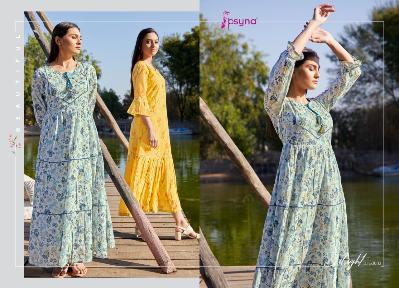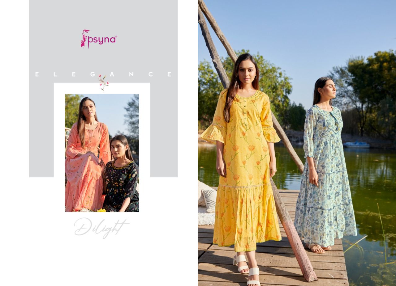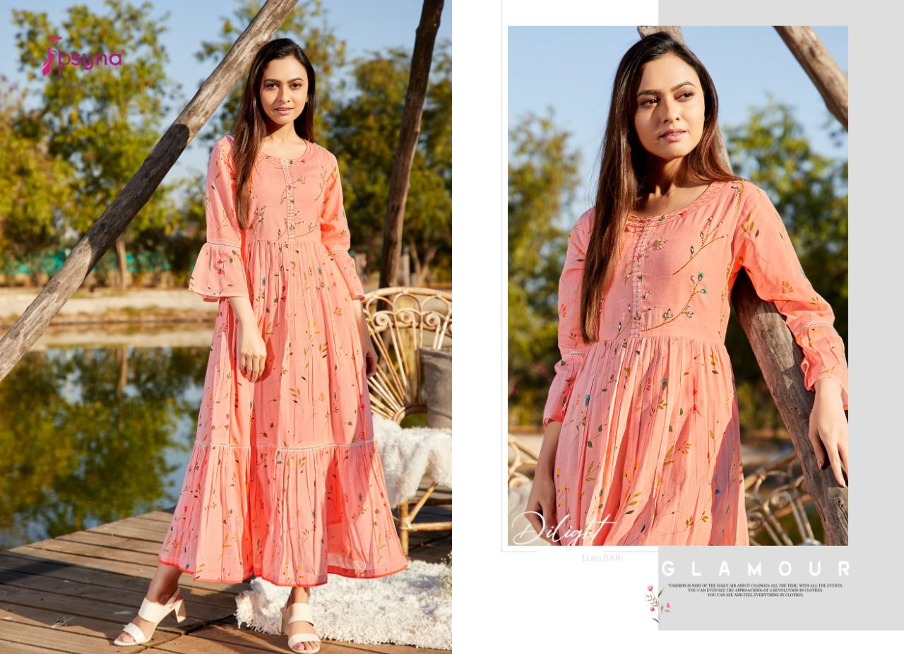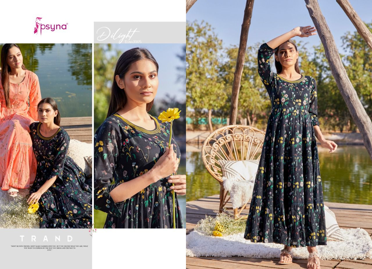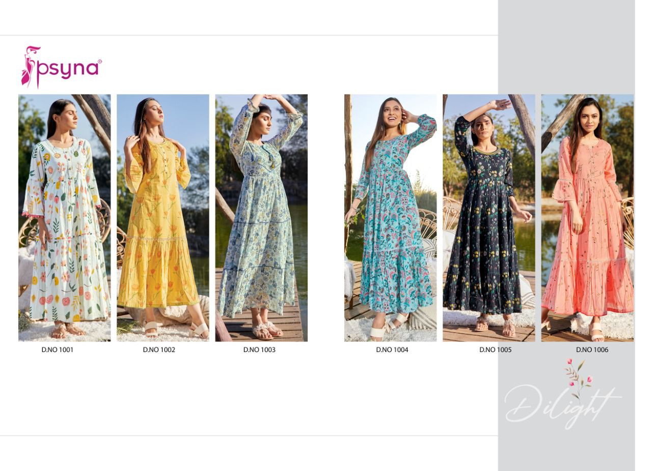 Buy Online Delight By Psyna Designer Gown Manufacturer Traders And Dealer From India 6 Pcs of Full Catalogue at Wholesale Price. Looking for Delight By Psyna Designer Gown Manufacturer Traders And Dealer From India Full Catalouge at Best Price? Buy Now Delight By Psyna Designer Gown Manufacturer Traders And Dealer From India at Wholesale Rate of Rs 7194 with Total 6 Pcs from authroized dealer and supplier of PSYNA Brand. Cost of Each piece is just only Rs 1199 which is very low and affordable price to resale the product in your retail store ,This is Surat based Wholesale Supplier & Dealer of PSYNA Brand. Click on Brand name to Know more about PSYNA Brand's products.Call or Whatsapp on 9898838984 for booking or enquiry