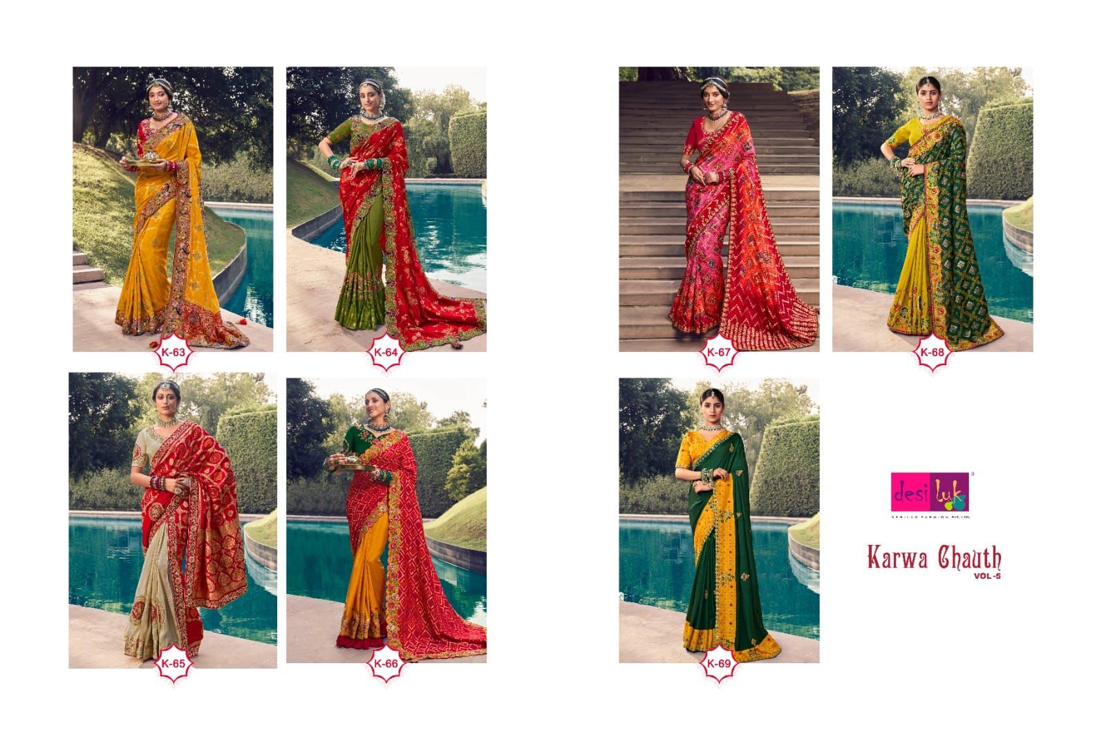 KARWA CHAUTH VOL 5 BY DESI LUK SAREES PRV LTD K-63 5895+GST K-64 4895+GST K-65 4895+GST K-66 4895+GST (it have double blouse K-67 4896+GST K-68 5295+GST K-69 3295+GST SINGLE AVAILABLE 100+singal |