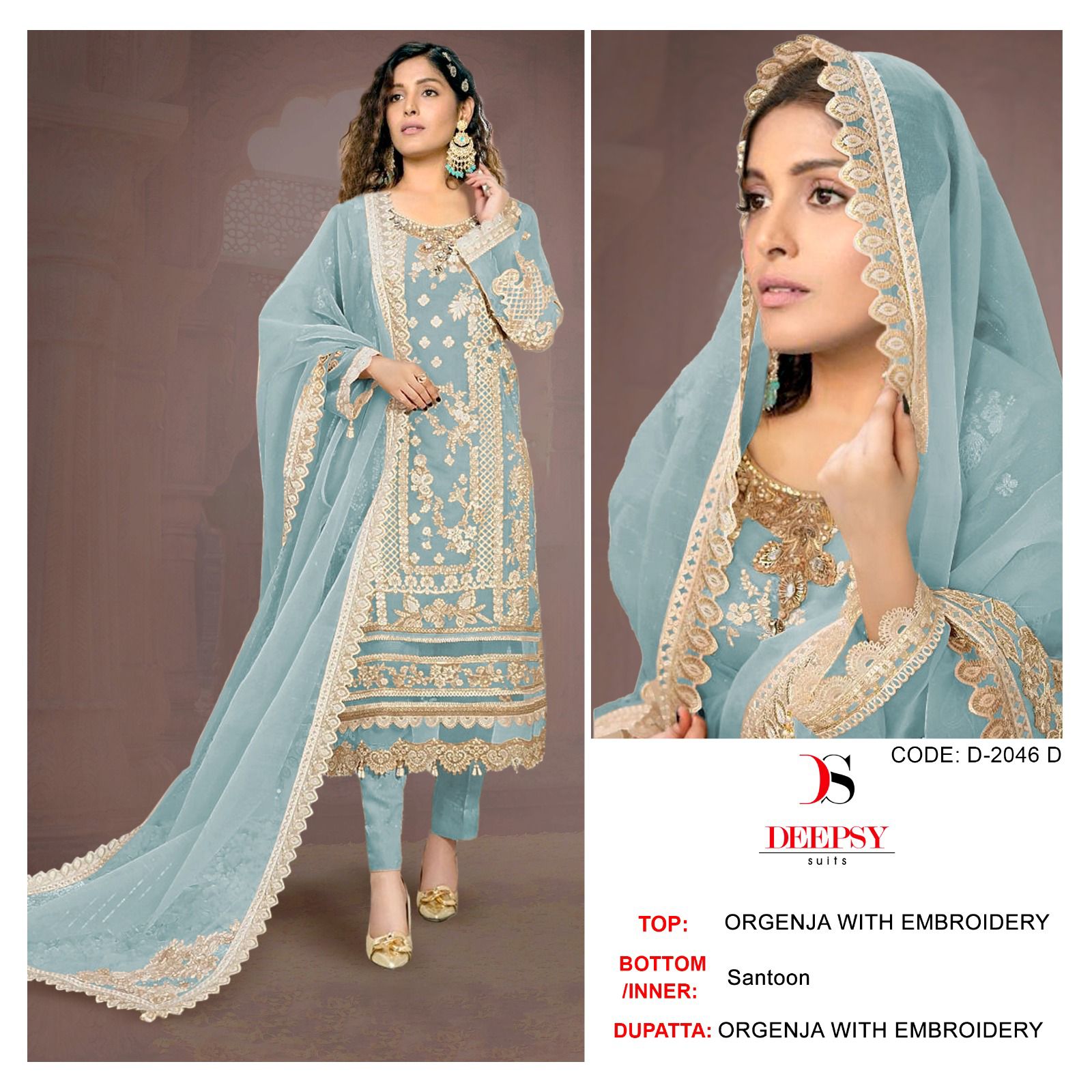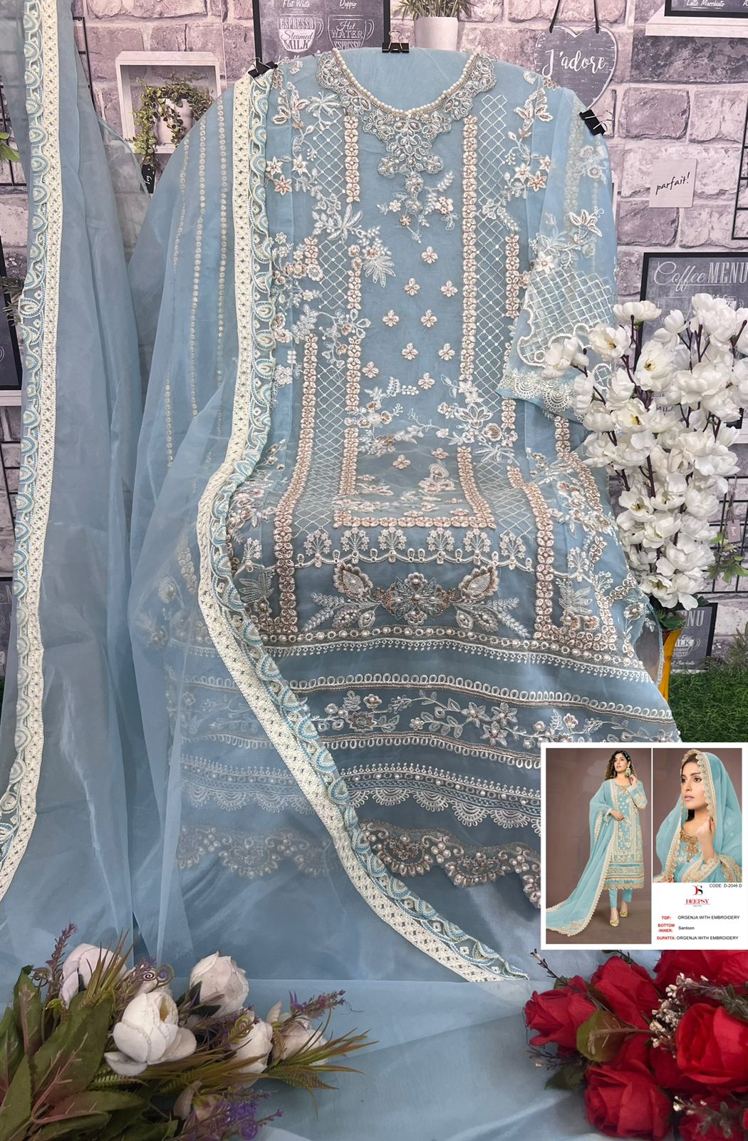 *D no.: 2046 ABCD by DEEPSY SUITS Top -organa with embroidery & Hand work (semi stich) Bot - Santoon Dup - organza with embroidery *Rate - 1121/-* GST SHIP EXTRA *_Quilted Fabric Used For best quality results_* 100+singli |