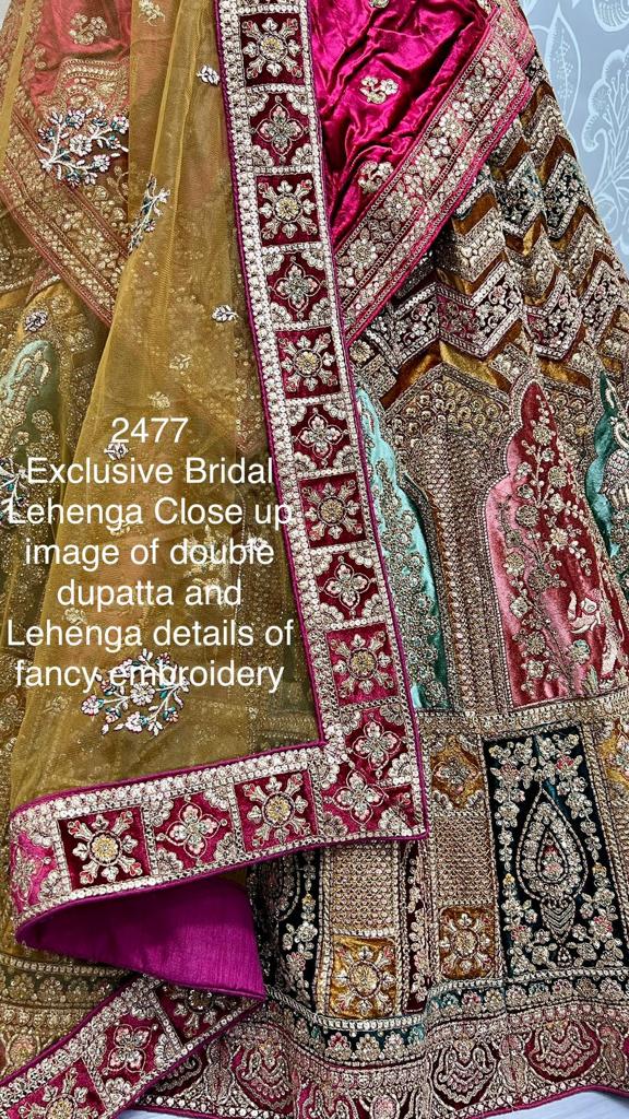 Design 2477 Exclusive Double Dupatta Fabulously Designd Flaird Bridal Lehengacholi Manufacturing Surat