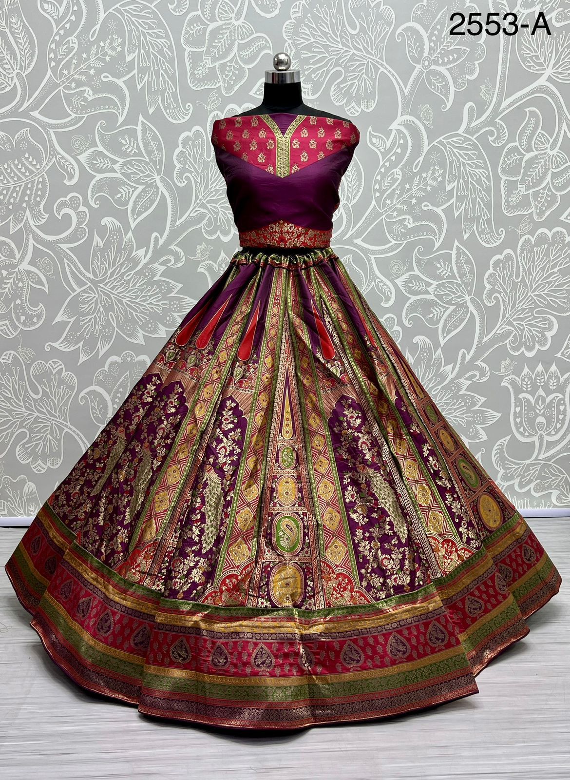 Design 2553 Banarasi Silk Full Flaired Weaving Lehengacholi