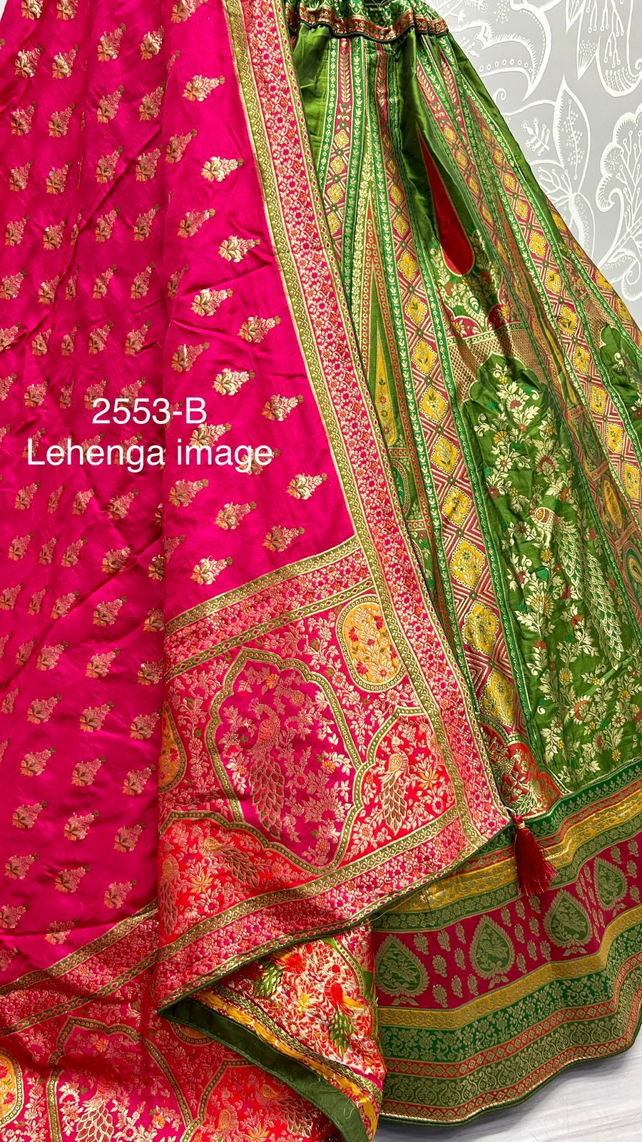 Buy Online Design 2553 Banarasi Silk Full Flaired Weaving Lehengacholi 2 Pcs of Full Catalogue at Wholesale Price. Looking for Design 2553 Banarasi Silk Full Flaired Weaving Lehengacholi Full Catalouge at Best Price? Buy Now Design 2553 Banarasi Silk Full Flaired Weaving Lehengacholi at Wholesale Rate of Rs 21998 with Total 2 Pcs from authroized dealer and supplier of Brand. Cost of Each piece is just only Rs 10999 which is very low and affordable price to resale the product in your retail store ,This is Surat based Wholesale Supplier & Dealer of Brand. Click on Brand name to Know more about Brand's products.Call or Whatsapp on 9898838984 for booking or enquiry