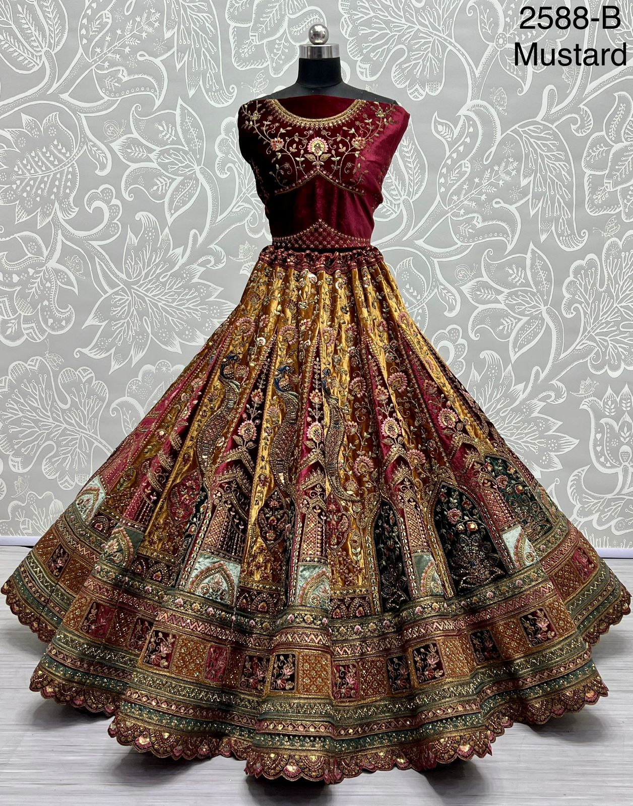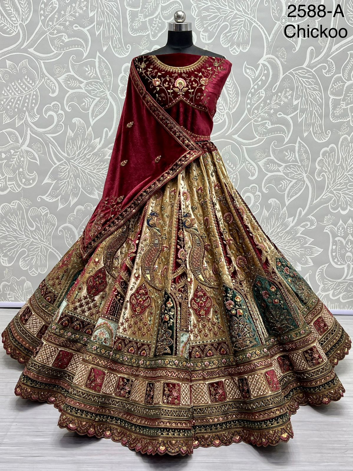 Design 2588 Five Meter Flair Bridal Velvet Lehengacholi Collection