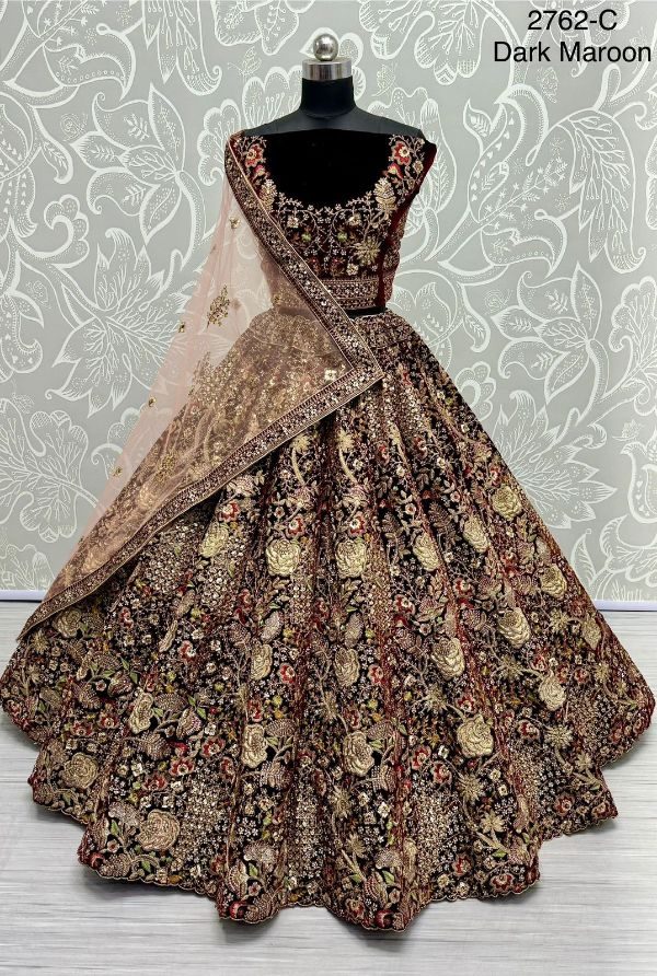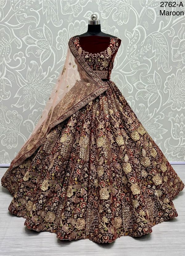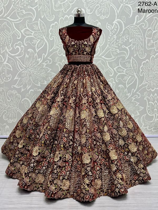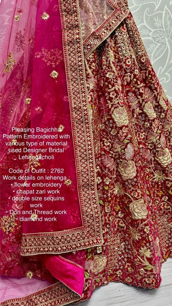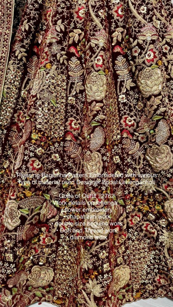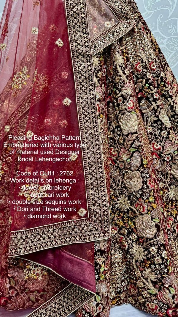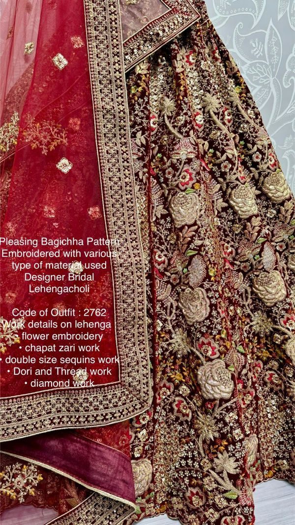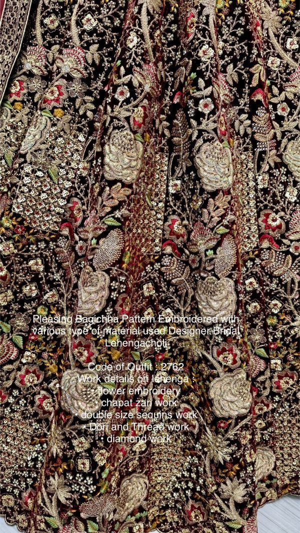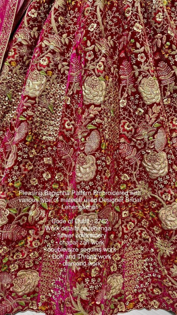 Design 2762 Pleasing Bagichha Pattern Embroidered With Various Type Of Material Used Designer Bridal Lehengacholi