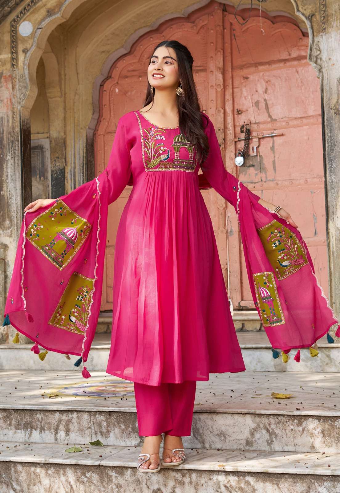 *Top:- *soft mull chanderi silk with full cotton inner* Full hand work