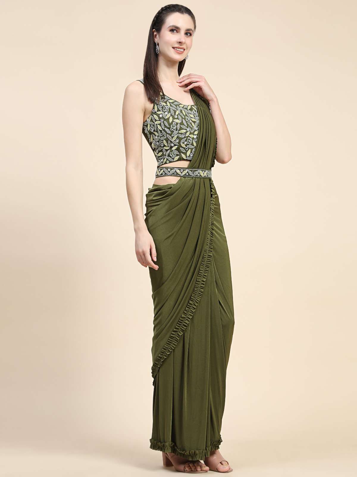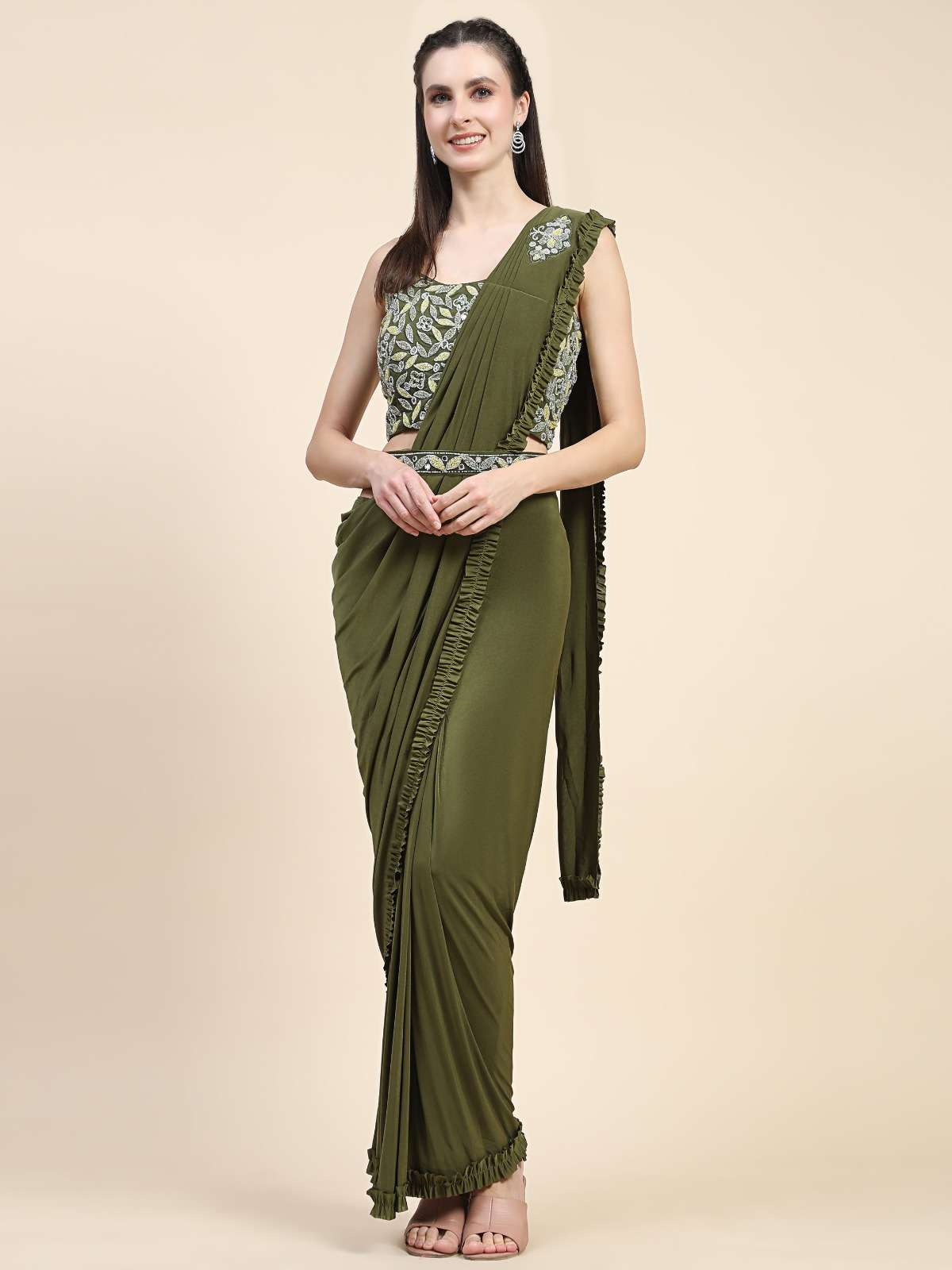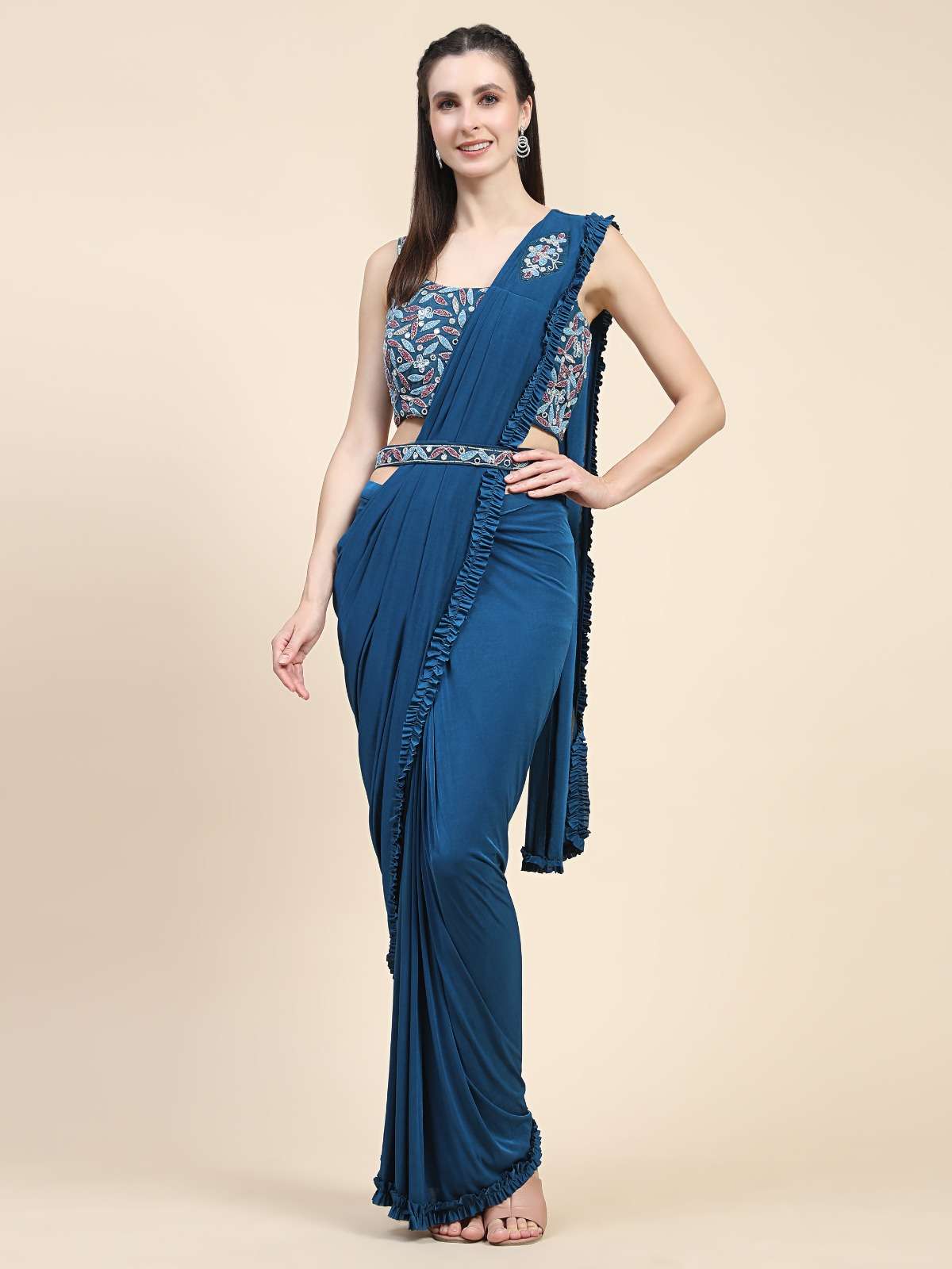 *SAREES* IMPORTED FABRIC AND FRILLED BORDER WITH HANDWORK BELT