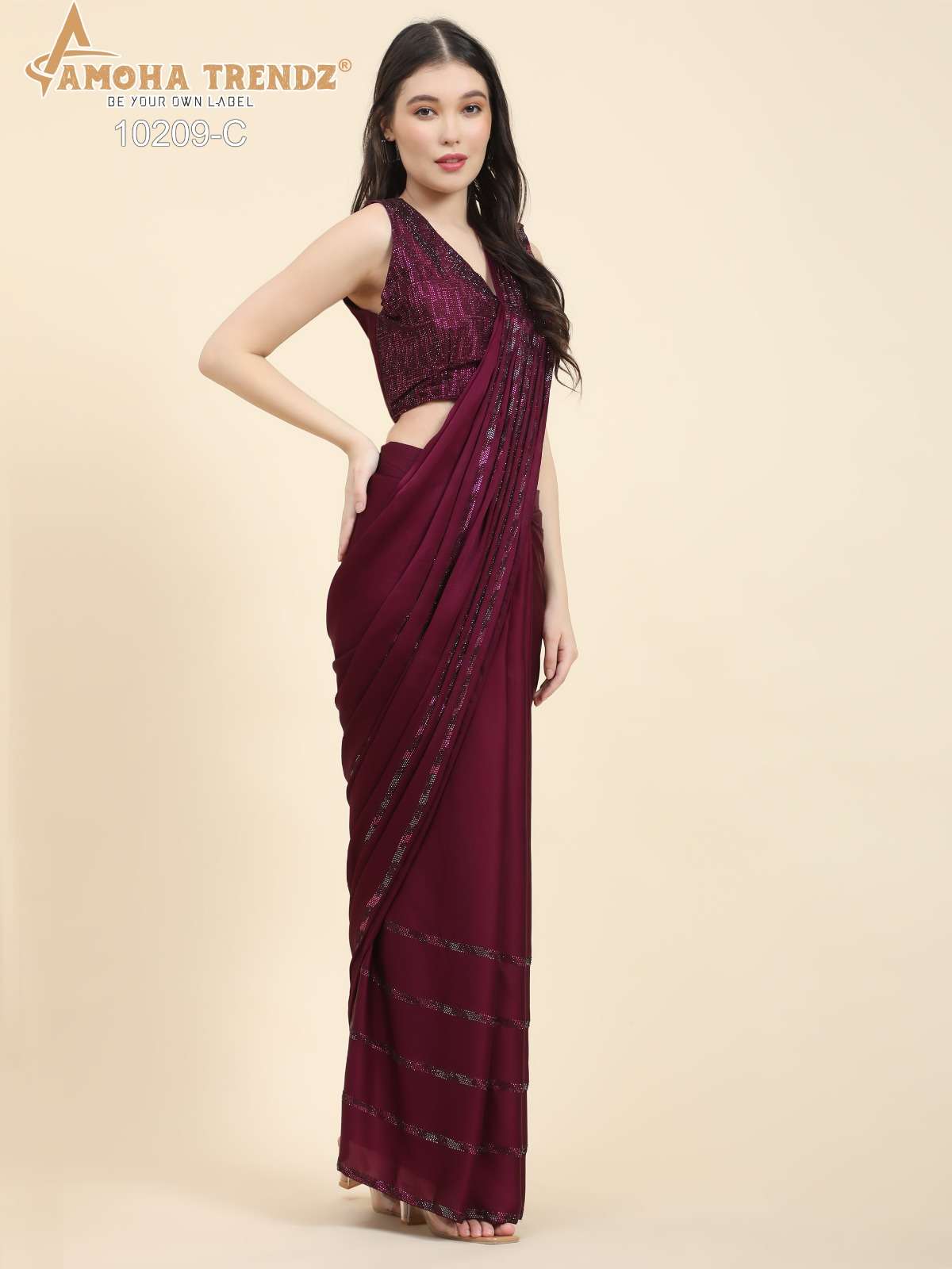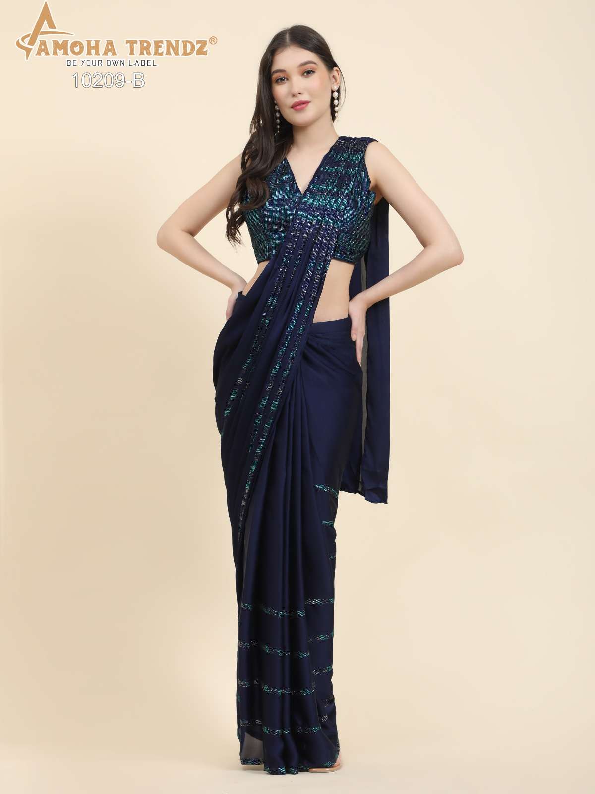 DESIGN NO 10209 By amoha trendz ARMANI SATIN saree collection manufacturer surat