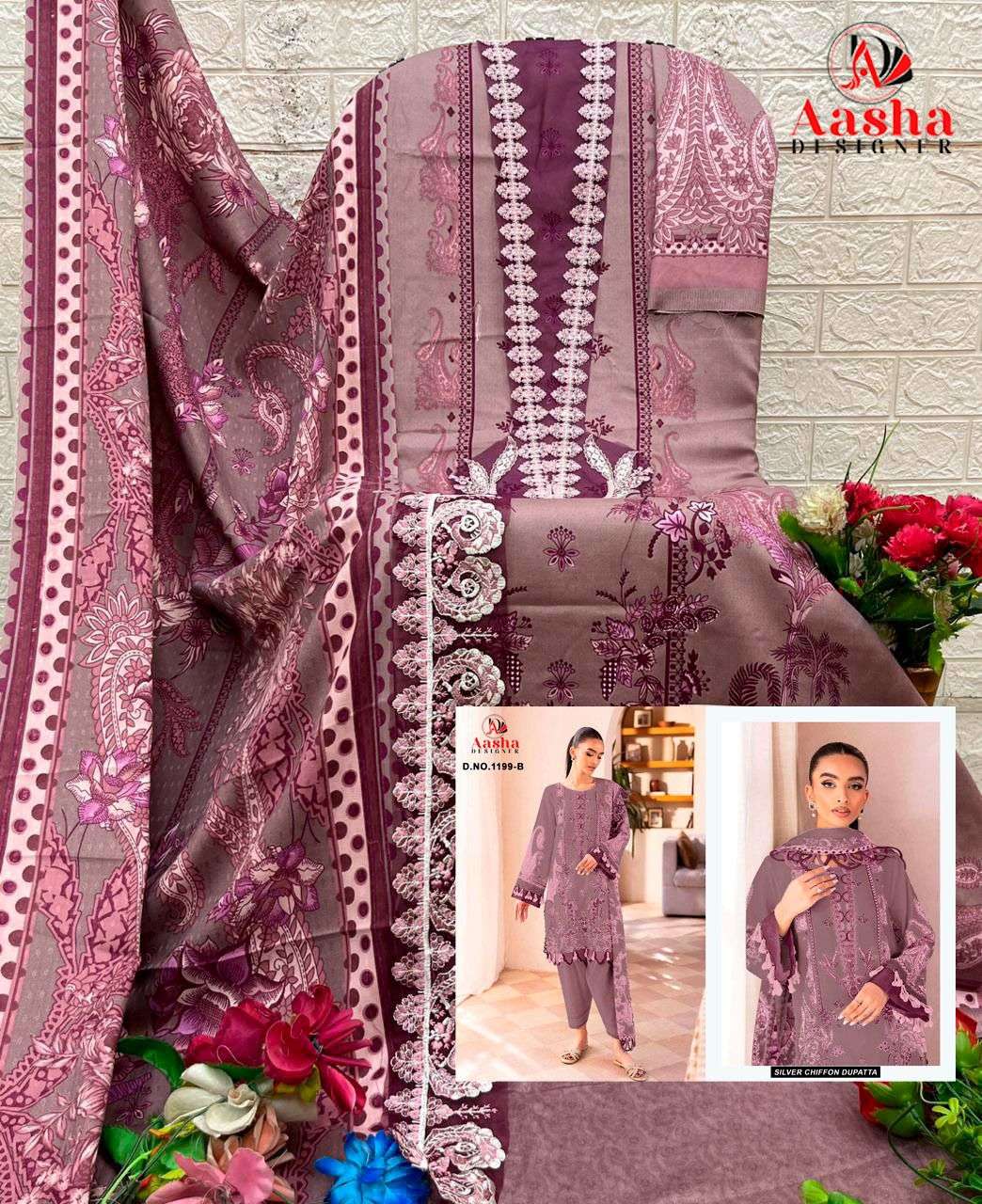 Design No 1199 by AASHA DESIGNER suit collection manufacturers surat