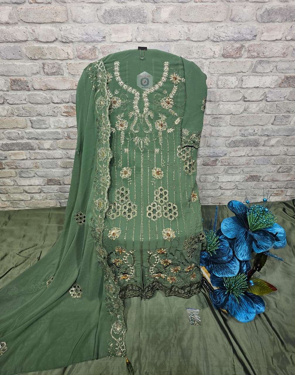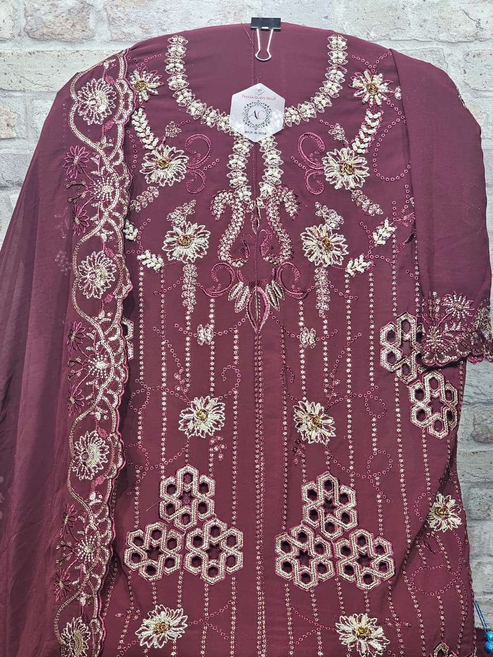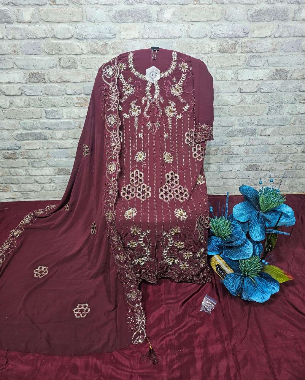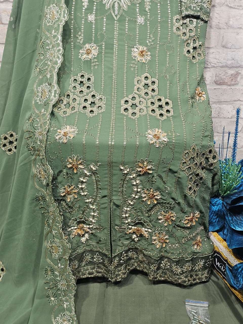 ━━━━━━━━━━━━━━━━━━ 🔴 *PRODUCT DETAILS* 🔴 ━━━━━━━━━━━━━━━━━━ 👗 Top: *Faux Georgette with heavy embroidery, cutwork, handwork & Zardosi work* 🧵 Inner: *Pure French Crepe* 👖 Pant: *Pure French Crepe* 🧣 Dupatta: *Faux Georgette with heavy Embroidery & cutwork*