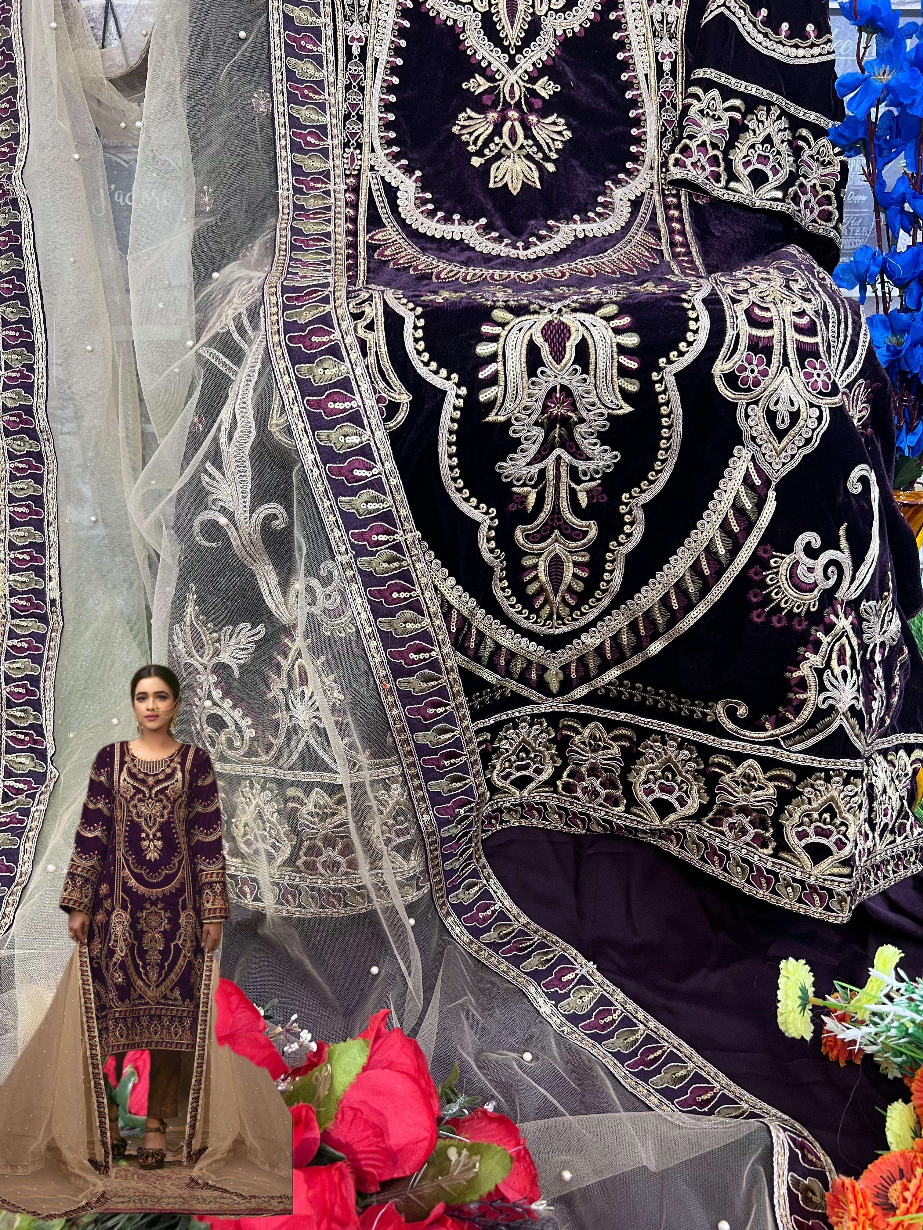 Fabric: Top: velvet with embroidery