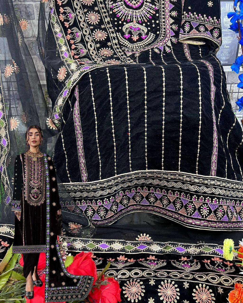 Fabric: Top: velvet with embroidery