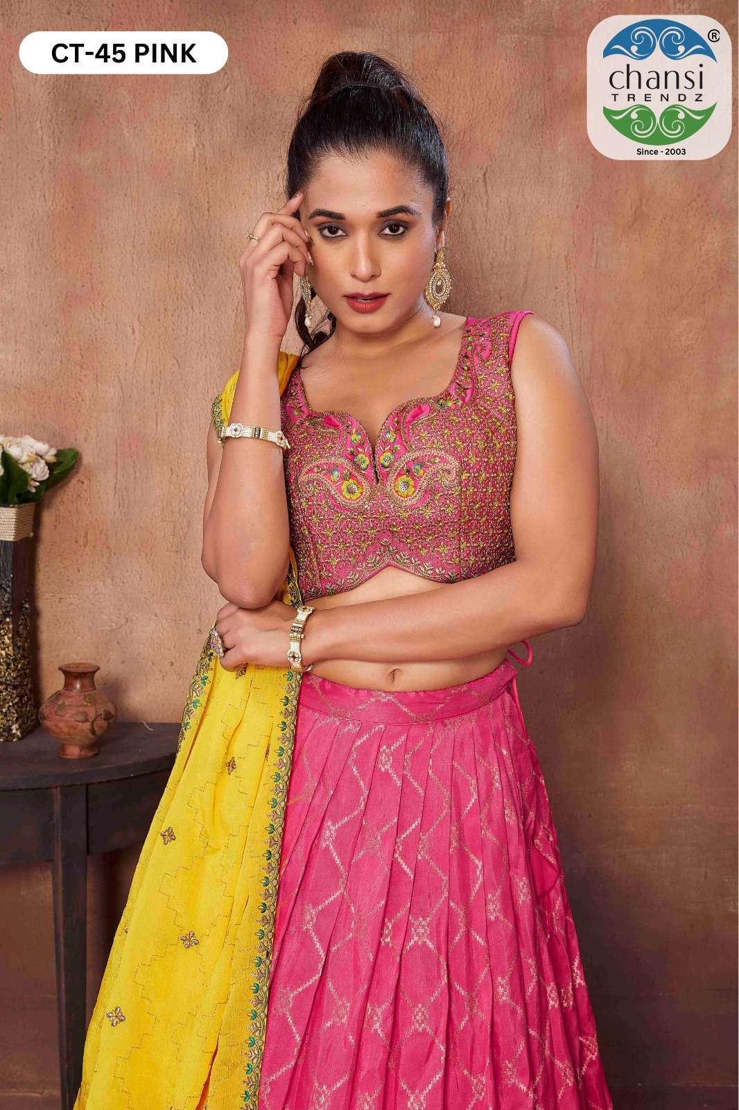 DESIGN NO 45 SERIES COLORS by CHANSI TRENDZ RUSSIAN SILK LEHENGA collection manufacturer surat