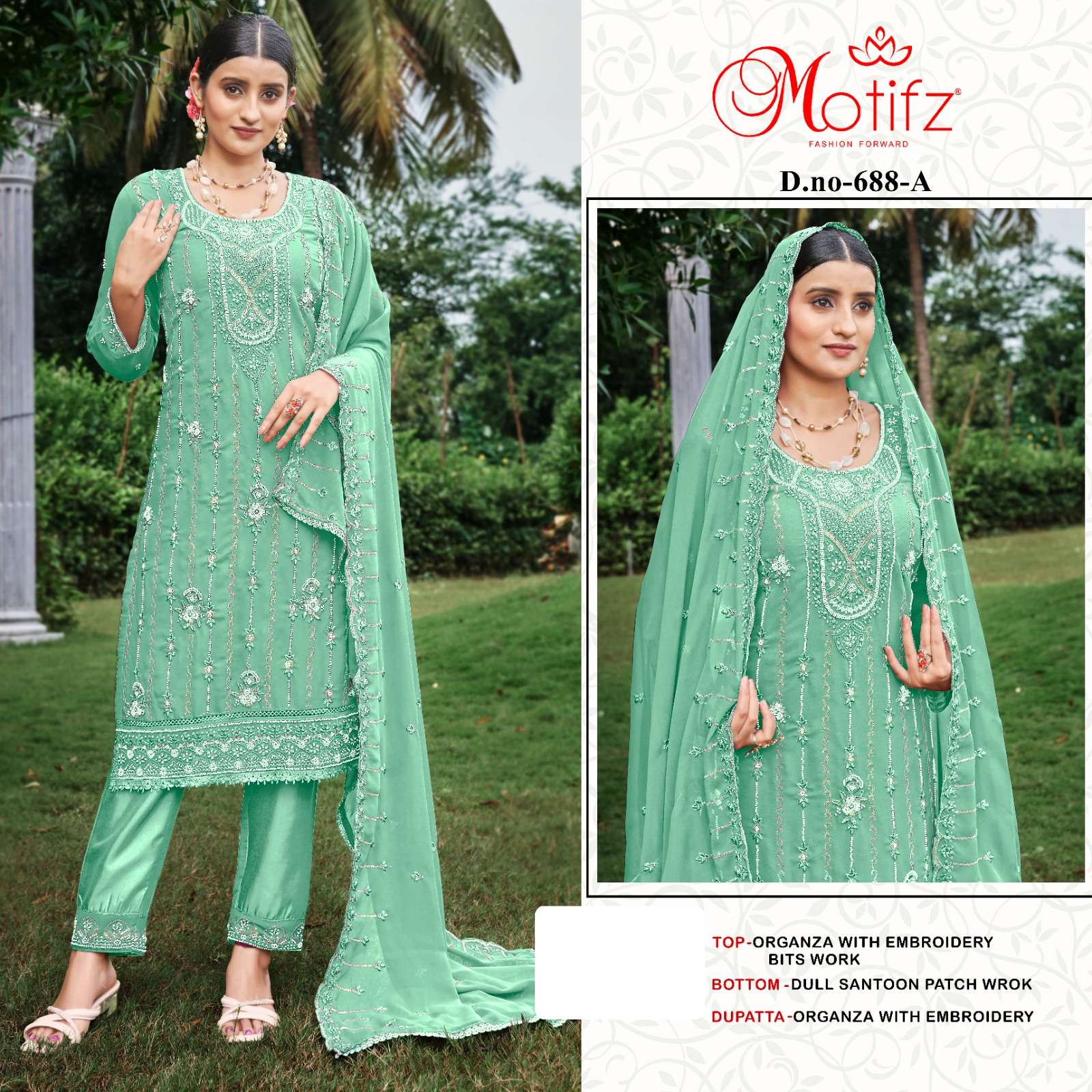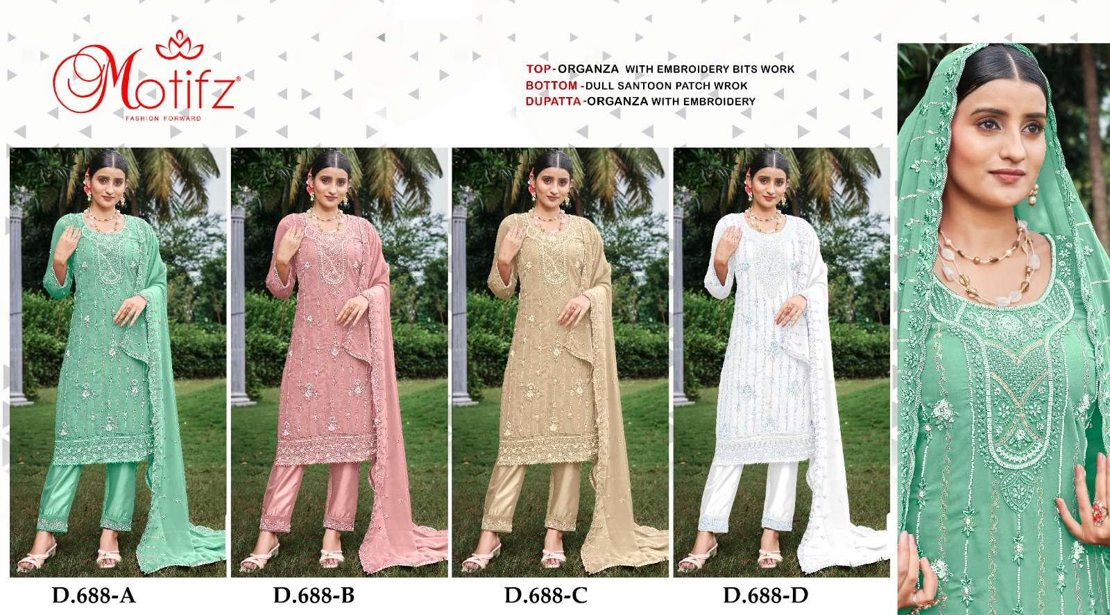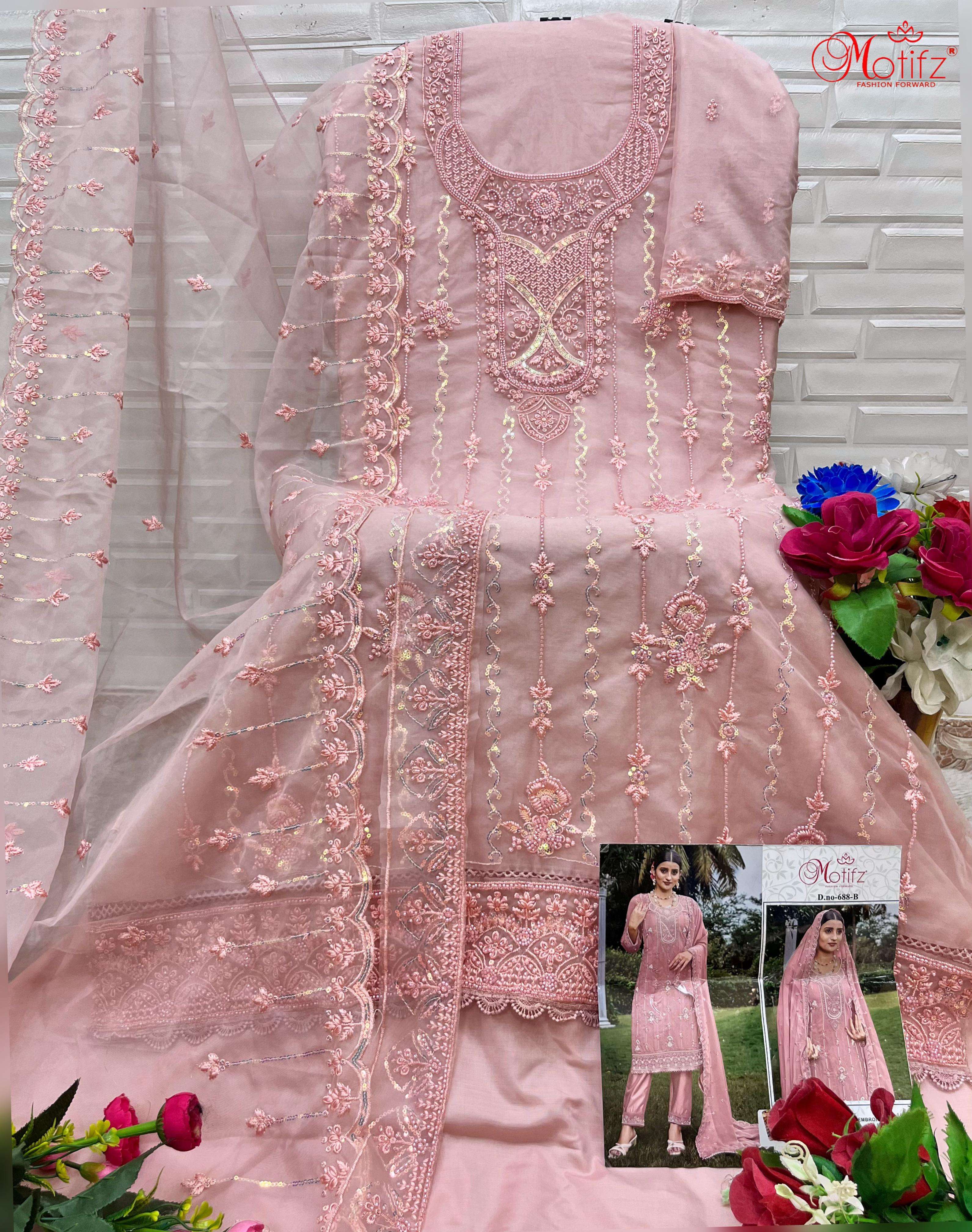 Design no 688 by Motifz Organza suit collection manufacturer surat