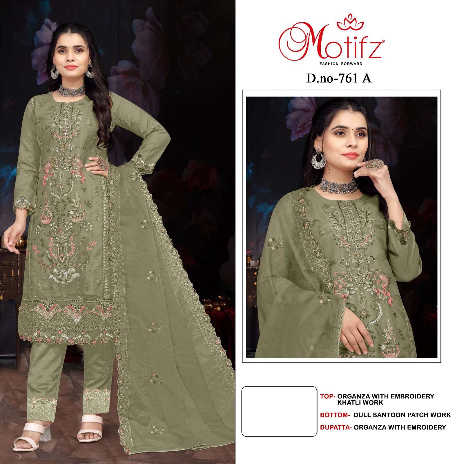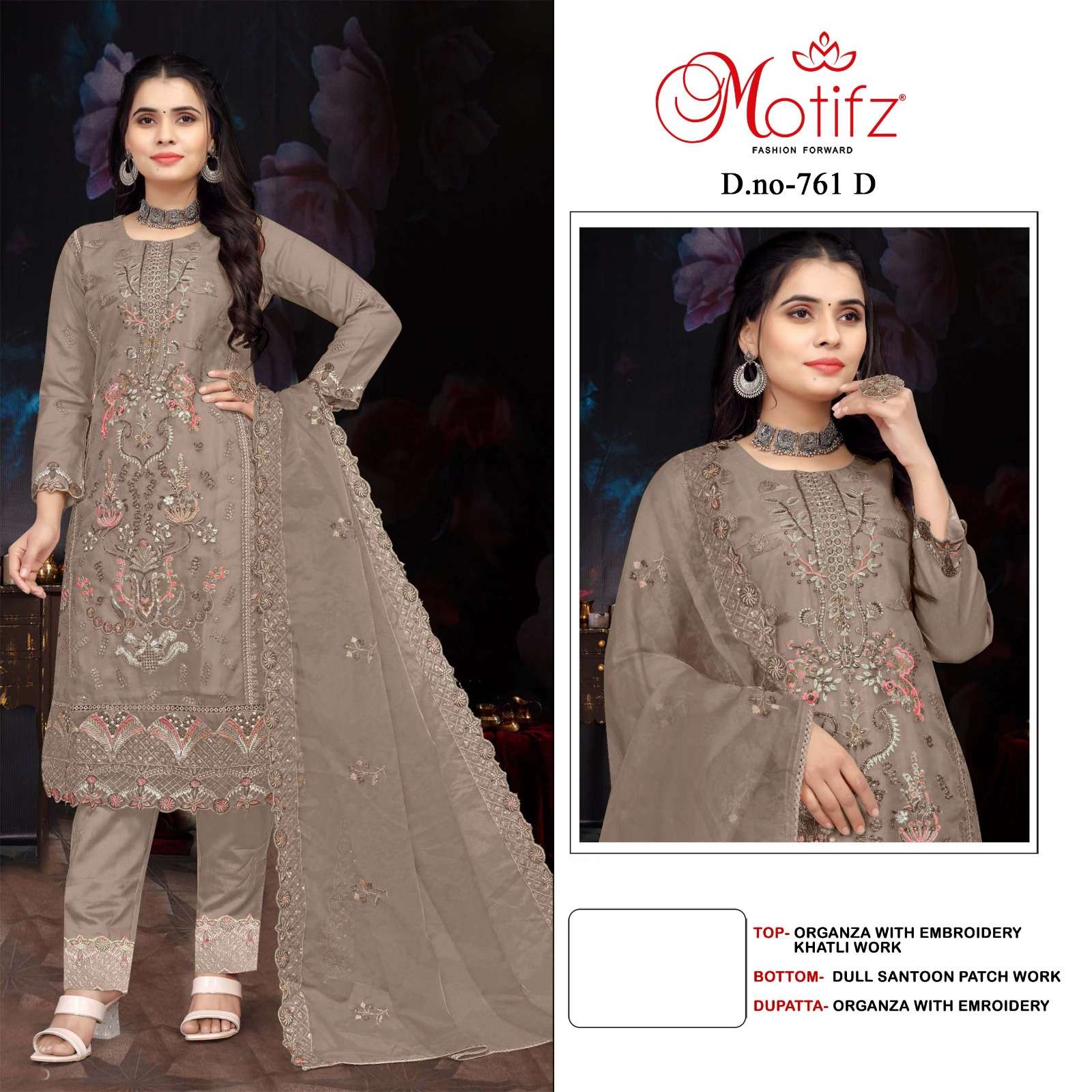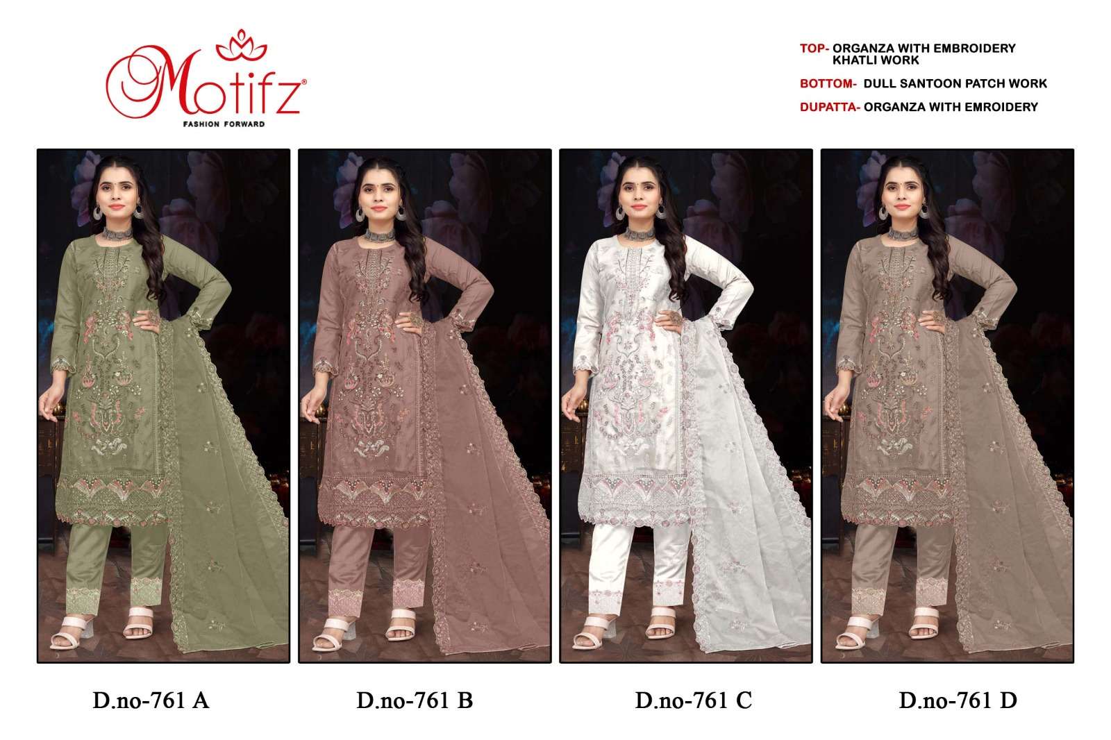 Buy Online Design NO 761 by motifz suit collection manufacturer surat 4 Pcs of Full Catalogue at Wholesale Price. Looking for Design NO 761 by motifz suit collection manufacturer surat Full Catalouge at Best Price? Buy Now Design NO 761 by motifz suit collection manufacturer surat at Wholesale Rate of Rs 4960 with Total 4 Pcs from authroized dealer and supplier of BRAND'S Brand. Cost of Each piece is just only Rs 1240 which is very low and affordable price to resale the product in your retail store ,This is Surat based Wholesale Supplier & Dealer of BRAND'S Brand. Click on Brand name to Know more about BRAND'S Brand's products.Call or Whatsapp on 9898838984 for booking or enquiry
