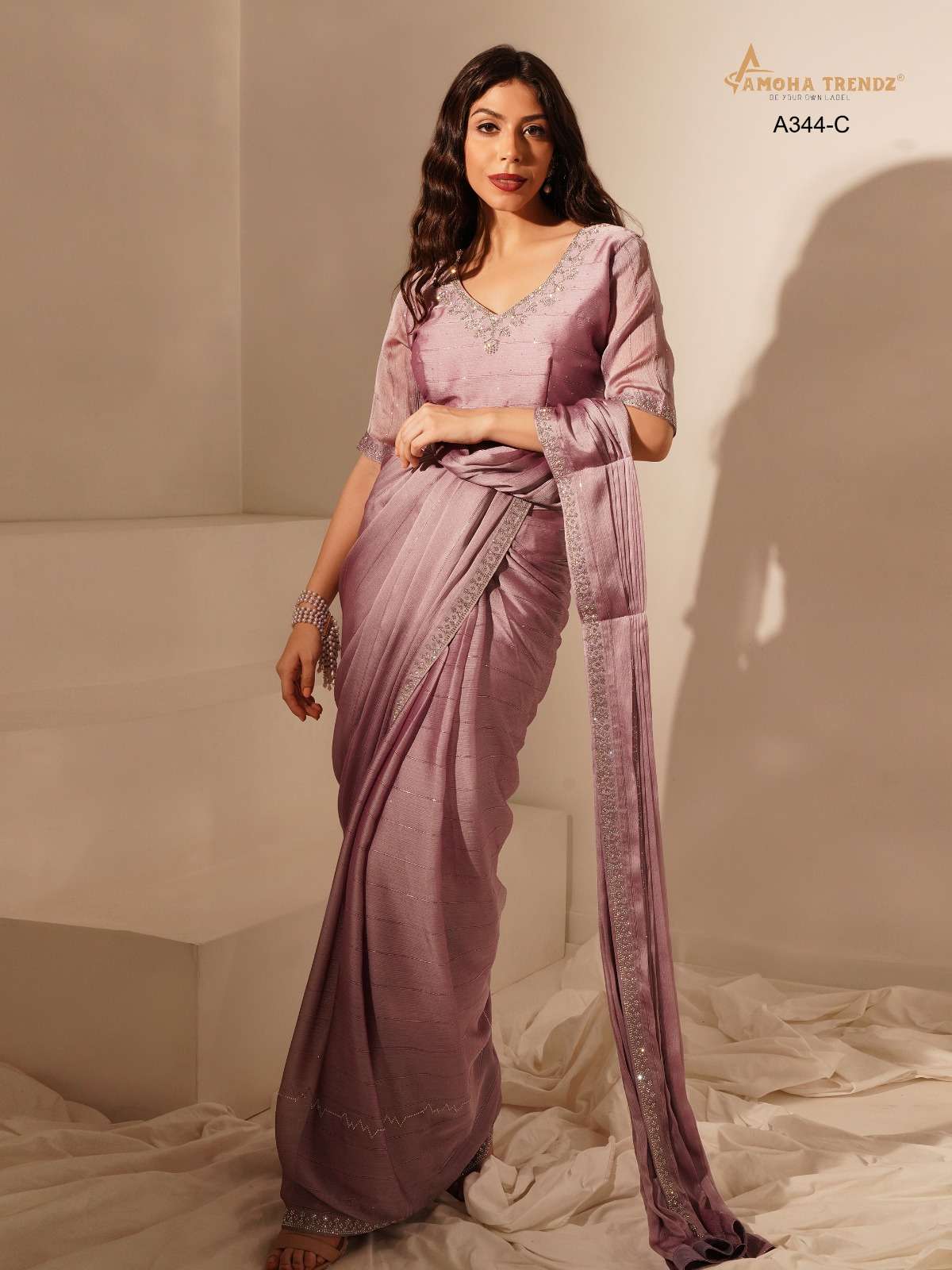 DESIGN NO A344 by amoha trendz READY TO WEAR CHINON SILK saree collection manufacturer surat