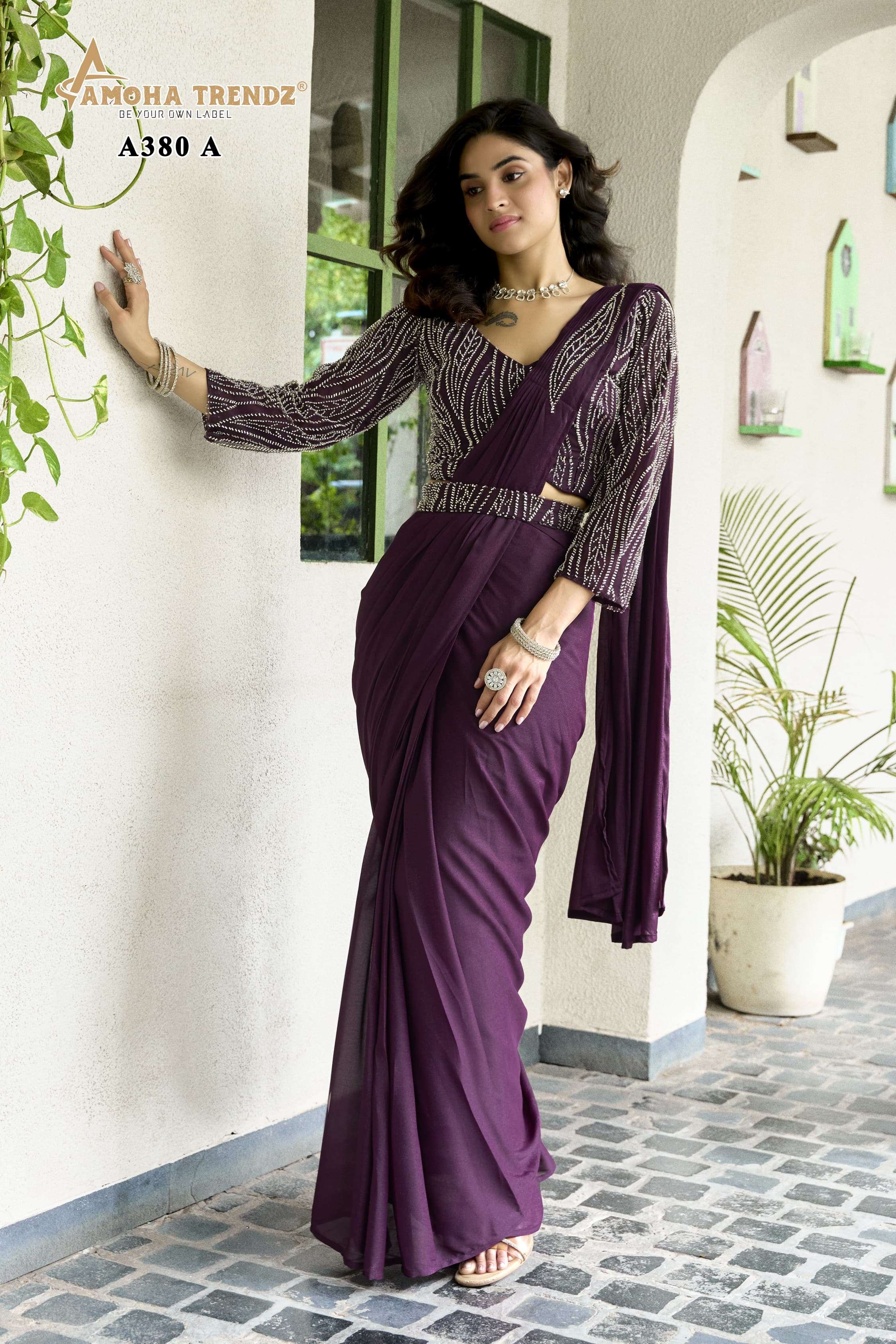 DESIGN NO A380 by amoha trendz READY TO WEAR SAREE collection manufacturer Surat