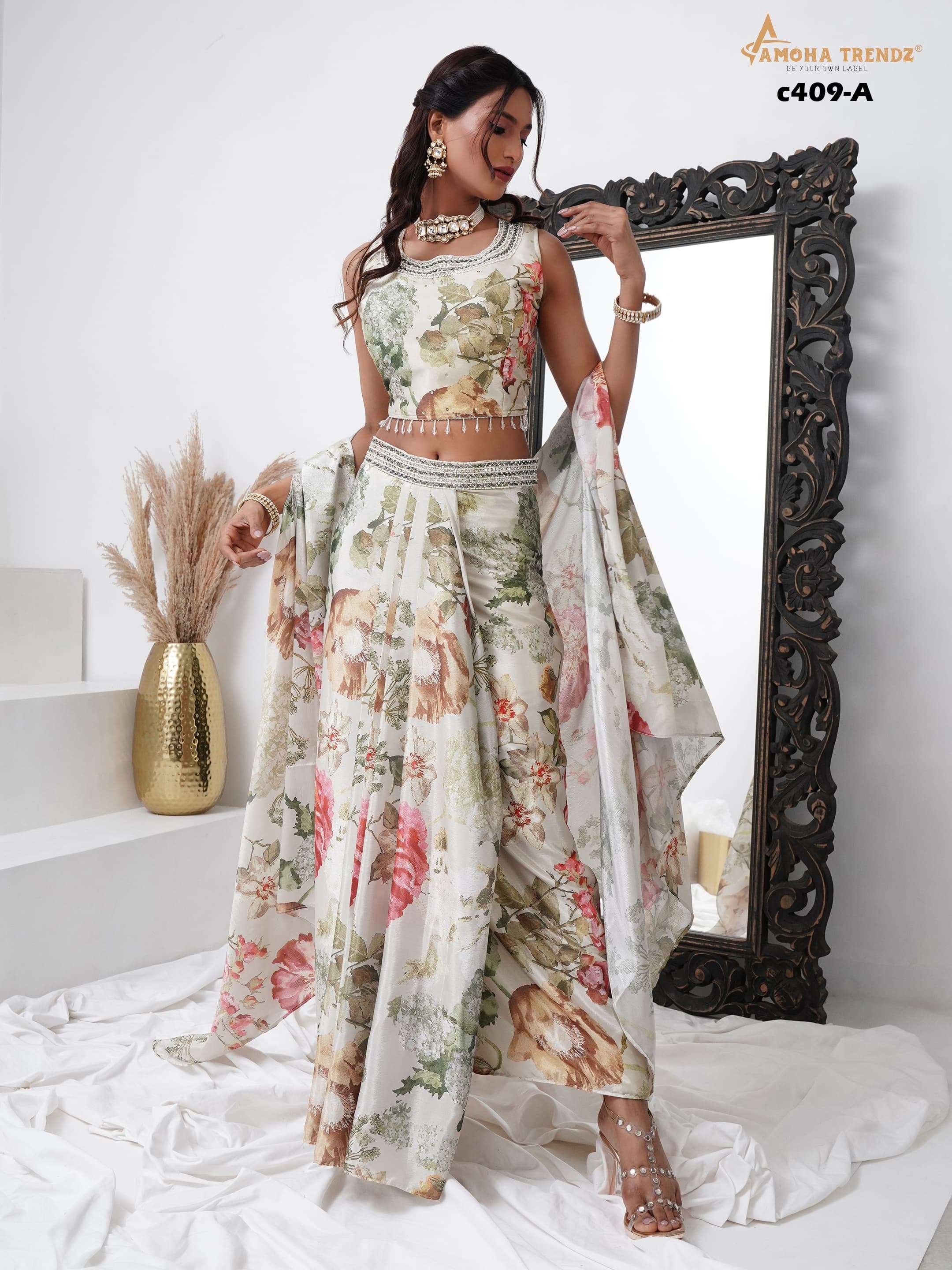 Buy Online DESIGN NO C409 by Amoha trendz READYMADE CROP TOP Suit collection manufacturer surat 1 Pcs of Full Catalogue at Wholesale Price. Looking for DESIGN NO C409 by Amoha trendz READYMADE CROP TOP Suit collection manufacturer surat Full Catalouge at Best Price? Buy Now DESIGN NO C409 by Amoha trendz READYMADE CROP TOP Suit collection manufacturer surat at Wholesale Rate of Rs 2125 with Total 1 Pcs from authroized dealer and supplier of Amoha Trendz Brand. Cost of Each piece is just only Rs 2125 which is very low and affordable price to resale the product in your retail store ,This is Surat based Wholesale Supplier & Dealer of Amoha Trendz Brand. Click on Brand name to Know more about Amoha Trendz Brand's products.Call or Whatsapp on 9898838984 for booking or enquiry