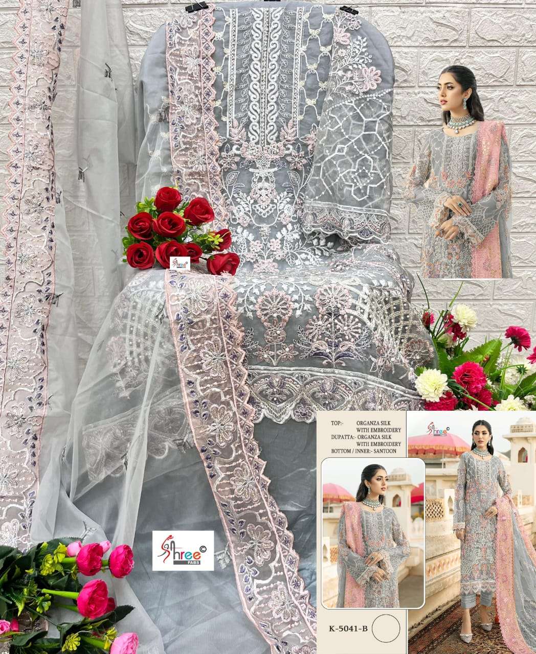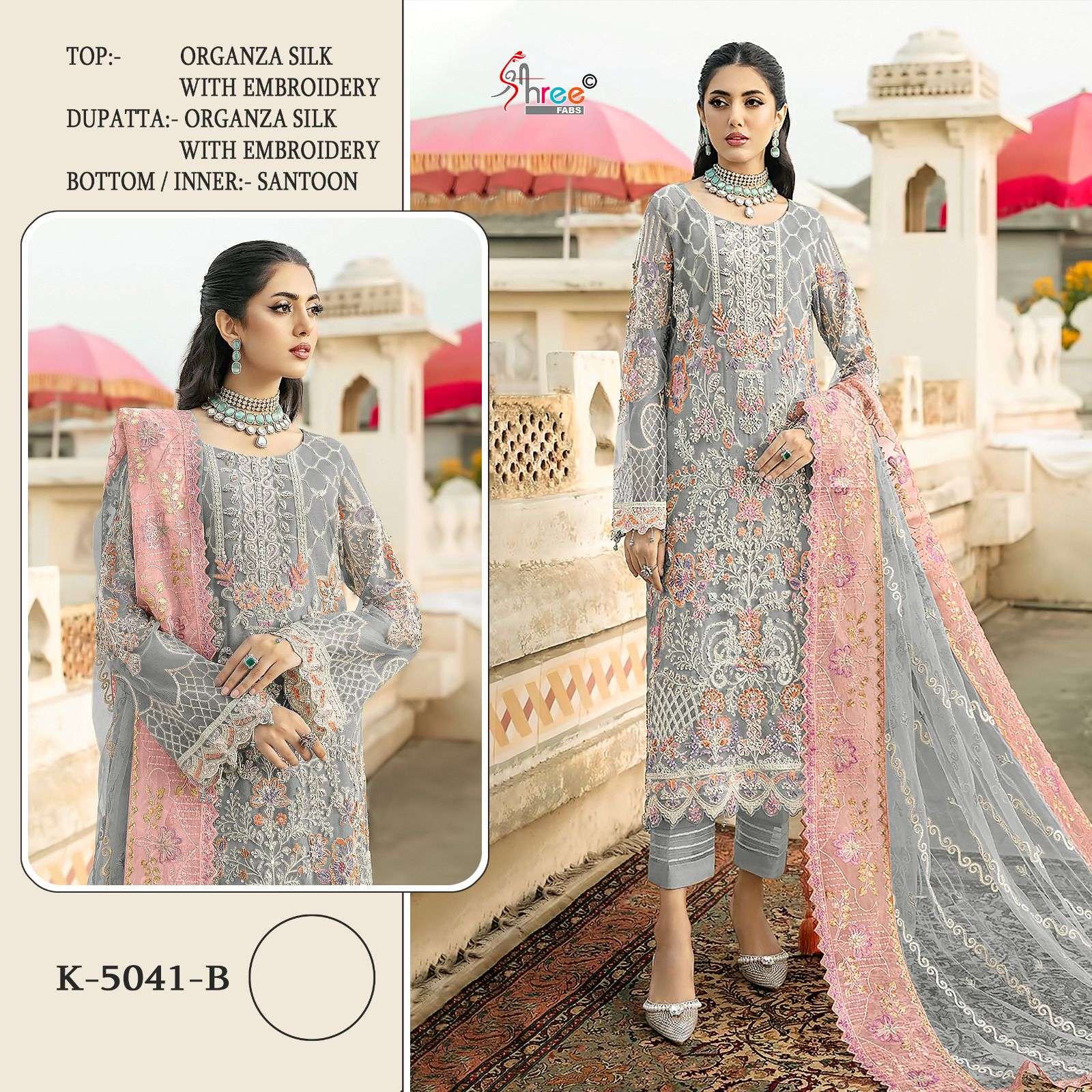 DESIGN NO k 5041 by shree fab organza silk suit collection manufacturer Surat