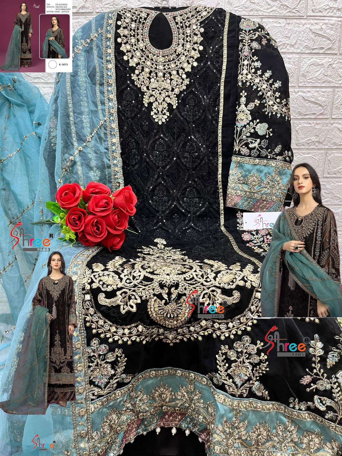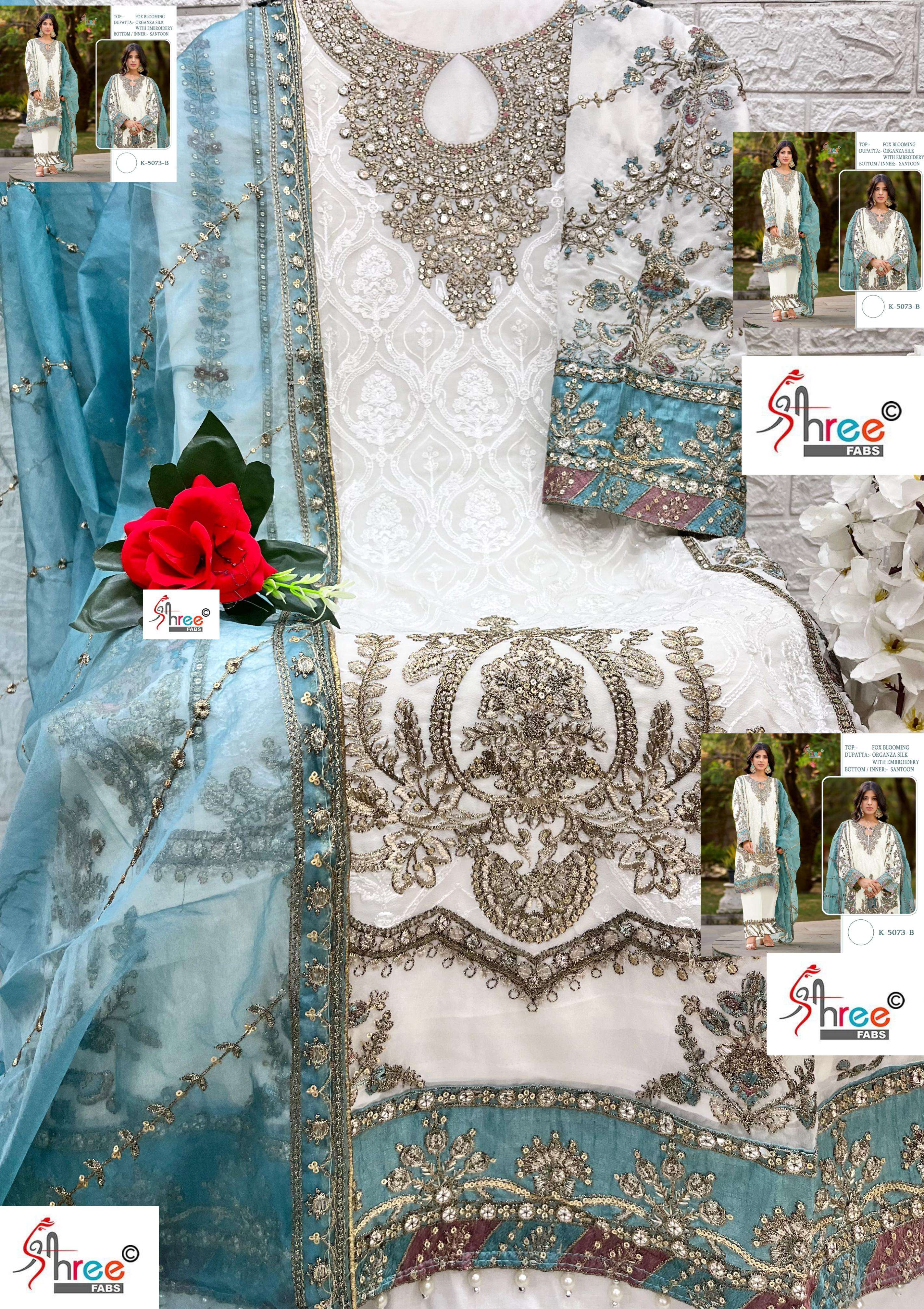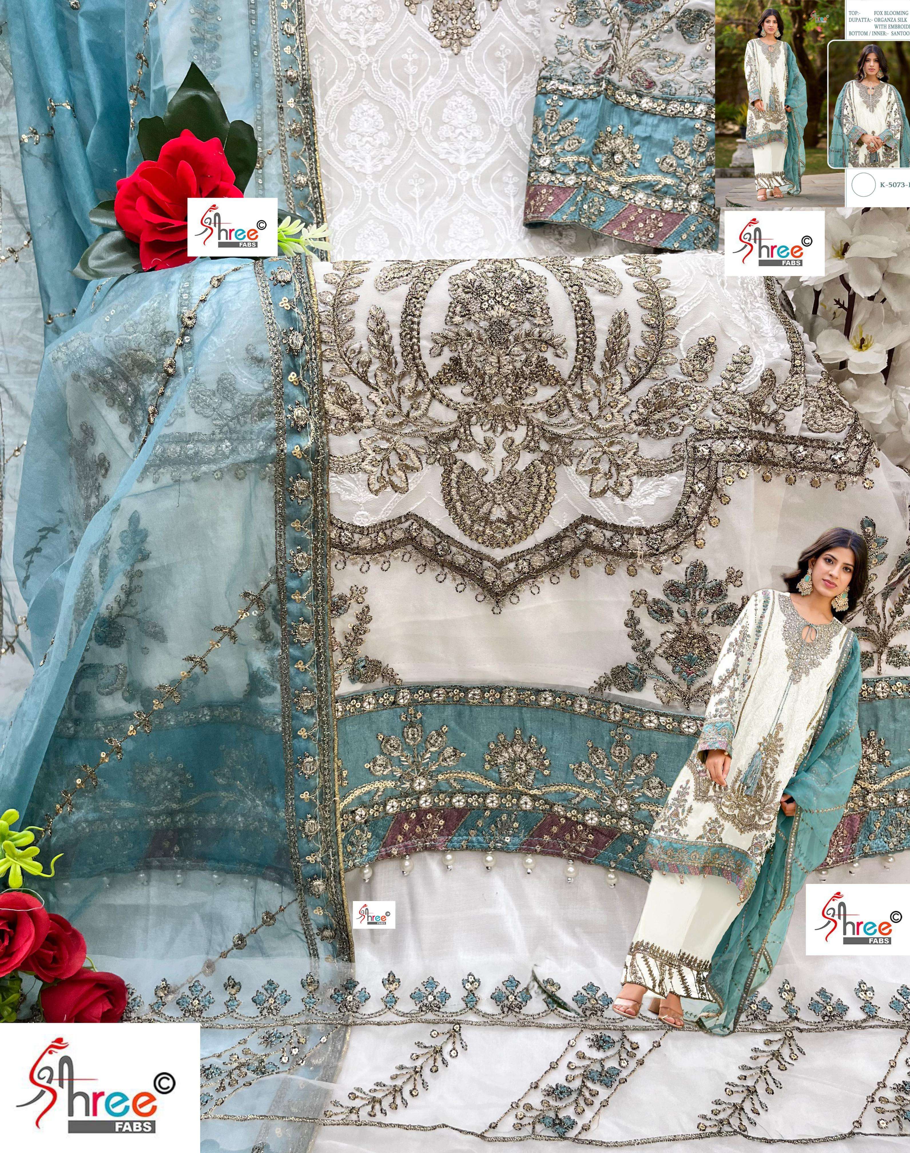 DESIGN NO k 5073 B White colour by shree fab faux georgette suit collection manufacturer surat