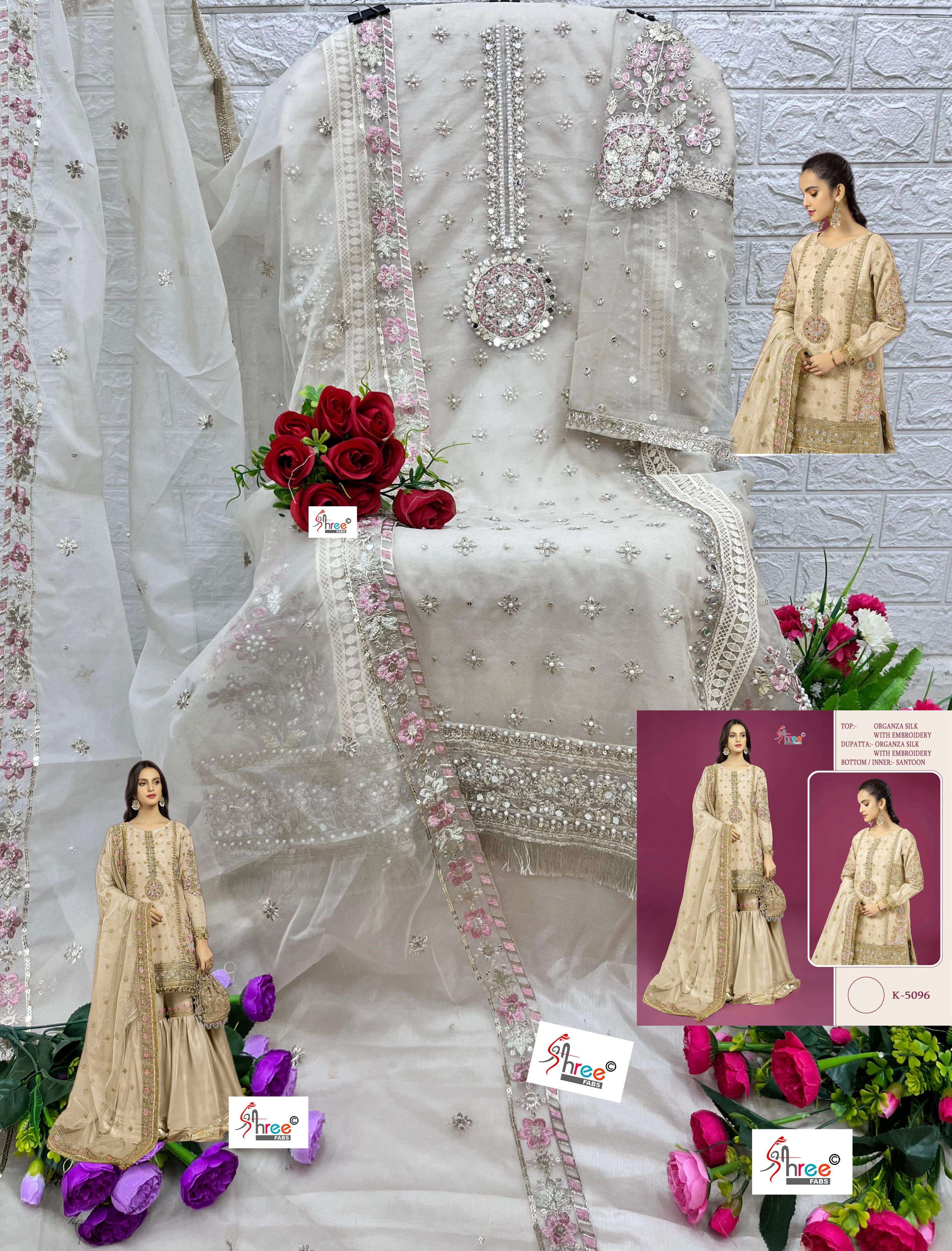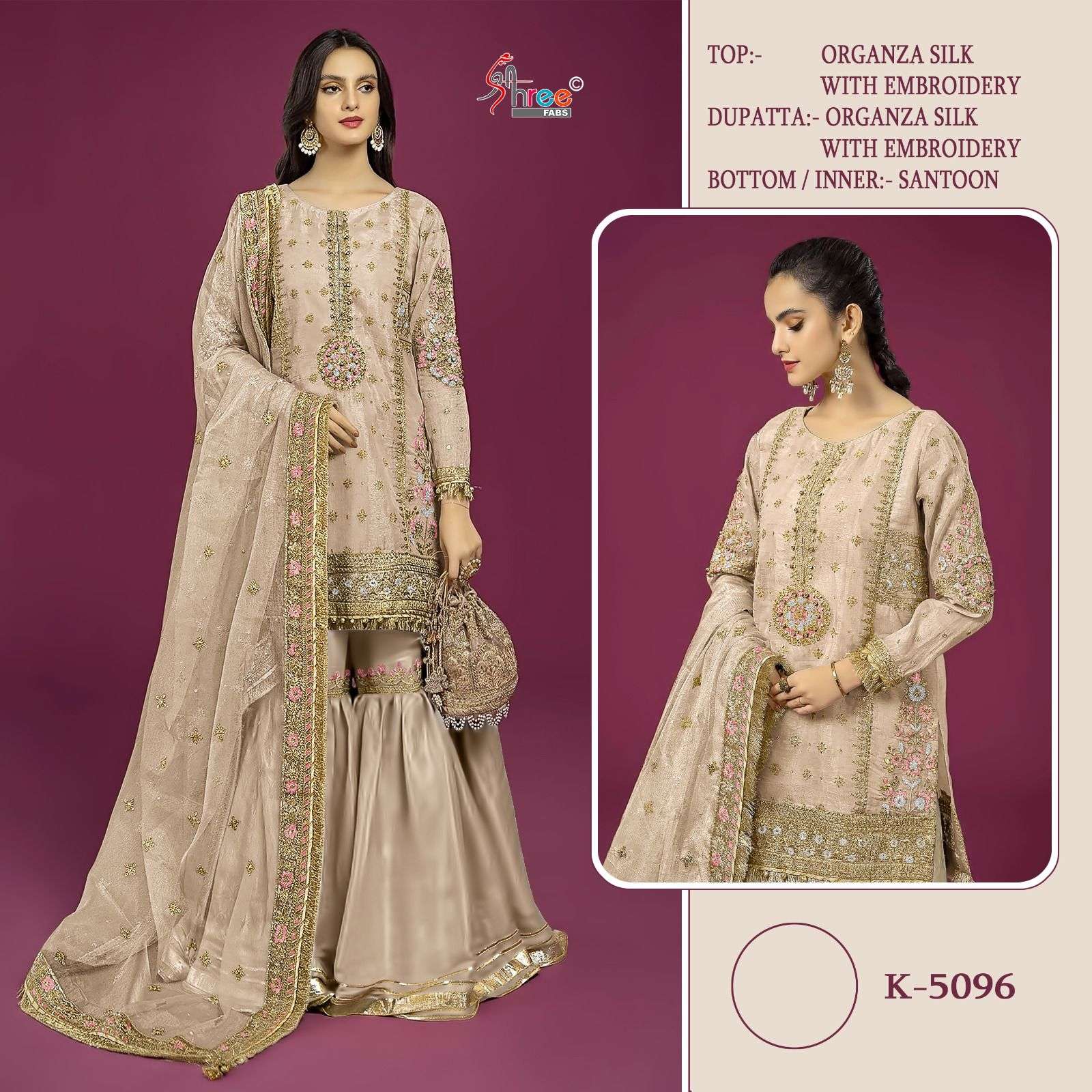 DESIGN NO K 5096 by shree fab organza silk suit collection manufacturer surat