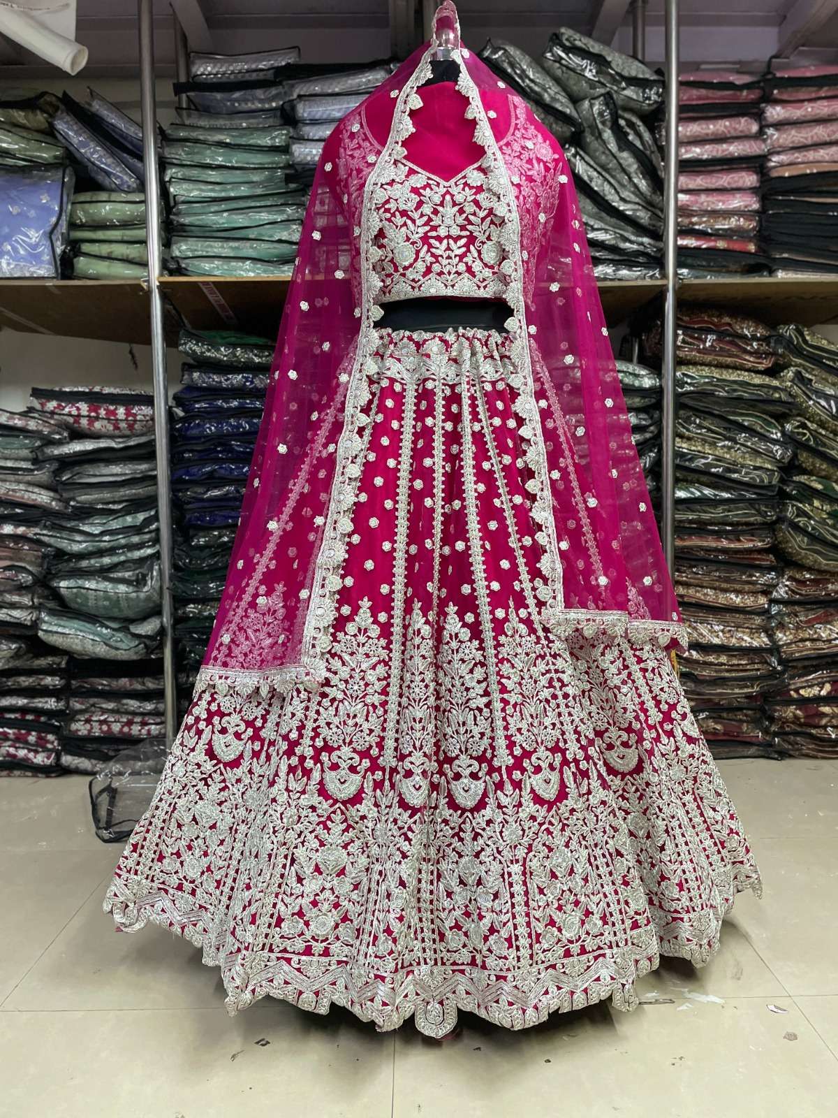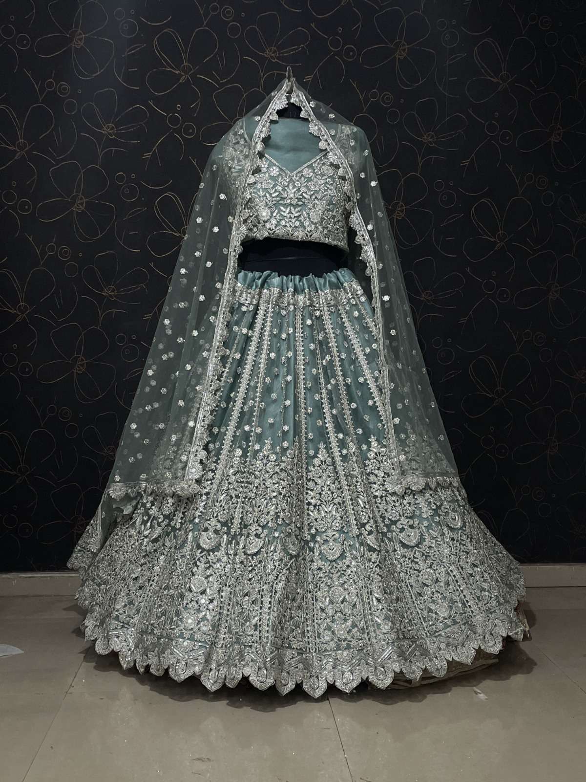 👗 LEHENGA :- heavy butterfly net + Beautiful Embroidery work fancy dori sequence work + FULL OF Daimond + WITH BIG CAN CAN AND CANVAS ADDED ITS TO STAND CAN CAN..