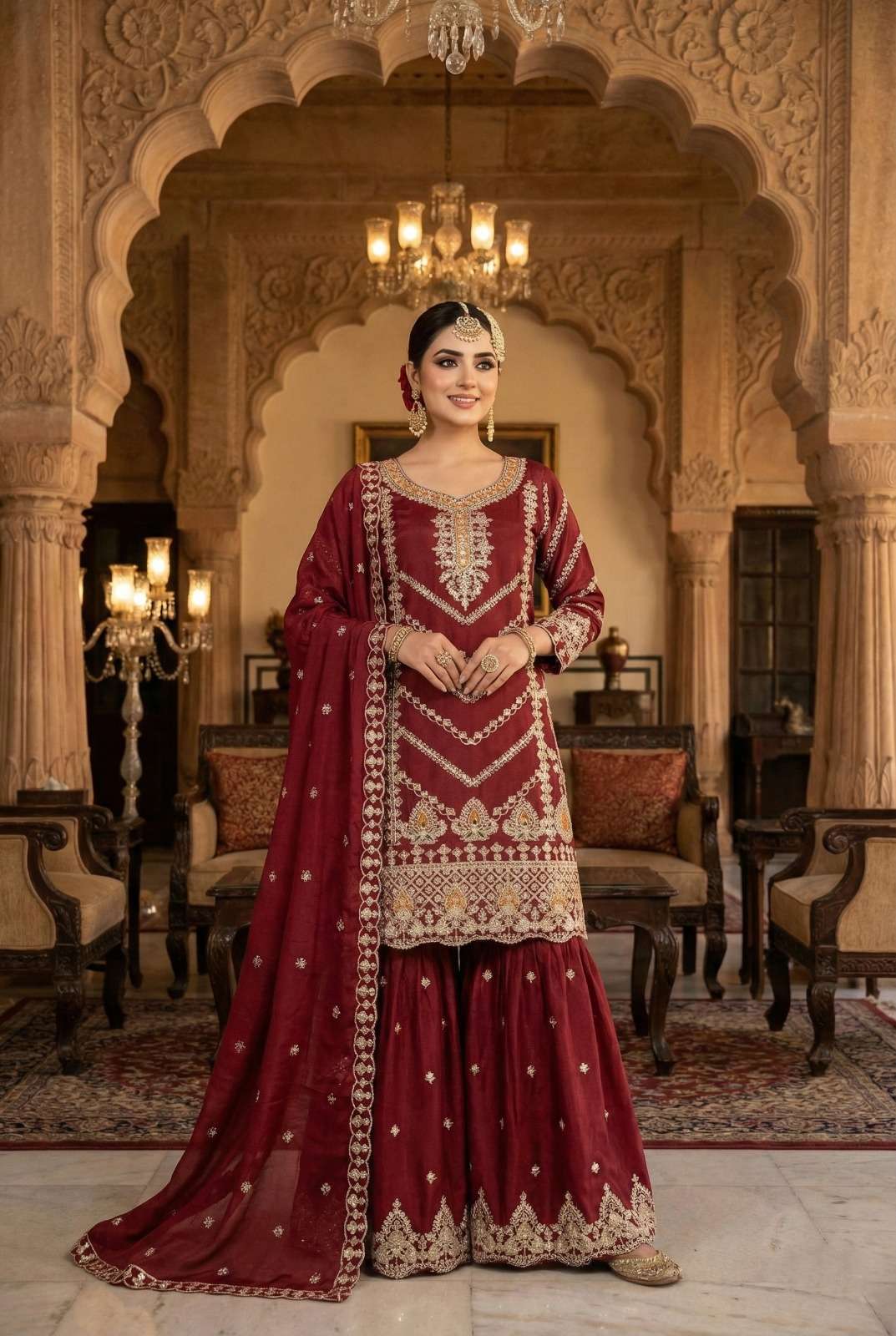 *👗 TOP* :- heavy CHINON + Beautiful all over sequence Embroidery work (L , XL, XXL)