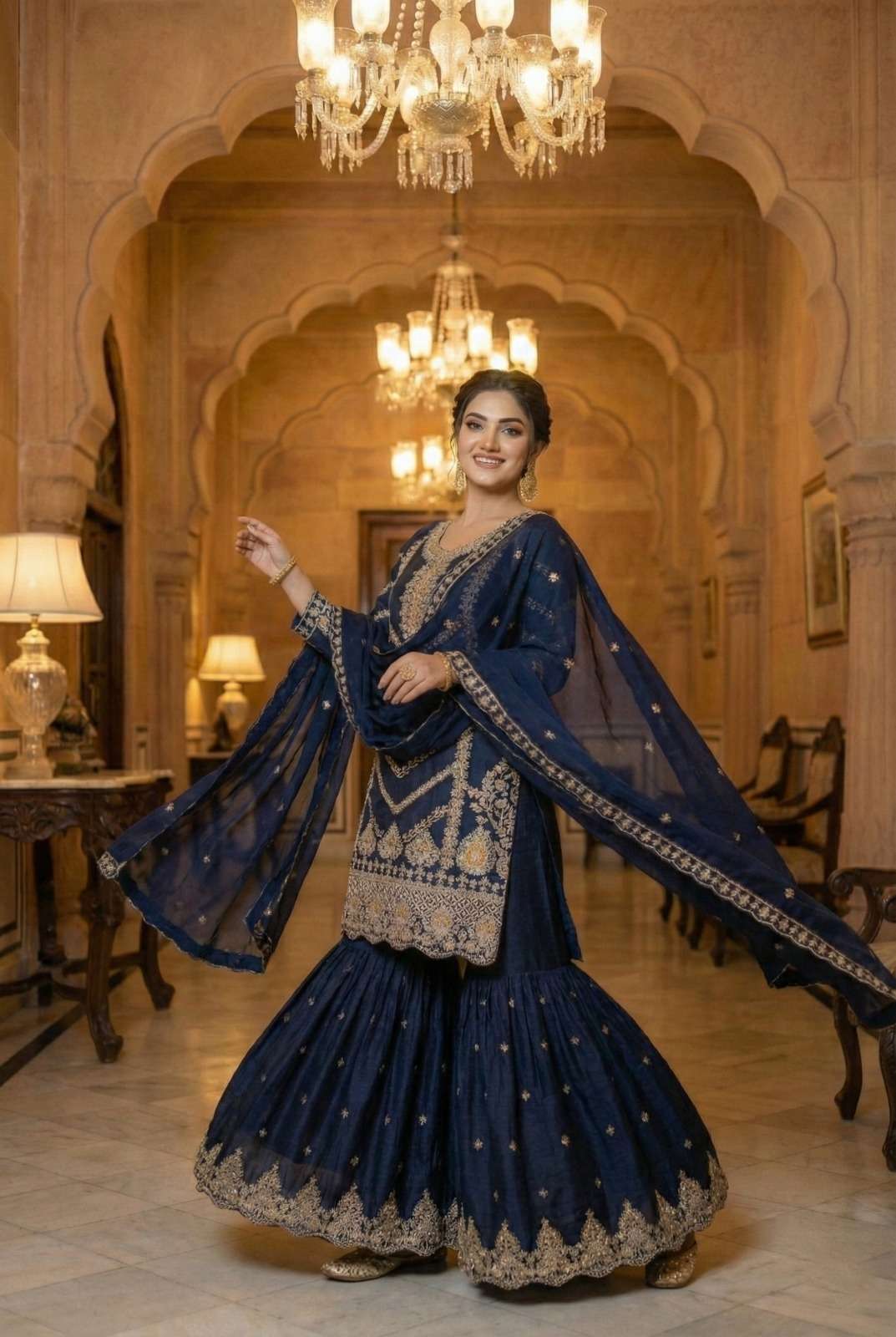 *👗 SHARARA* :- CHINON (FREE SIZE STITCHED UP TO 44 POSSIBLE)