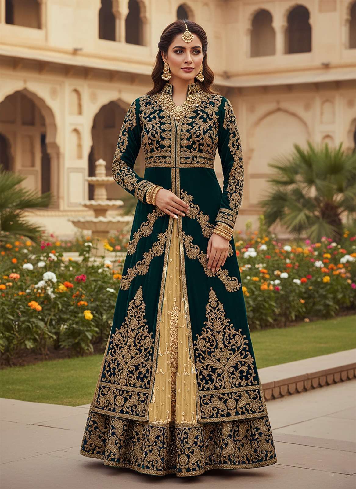 👗 ANARKALI TOP- -9000 markable Velvet +Beautiful Embroidery work fancy dori & stone work
