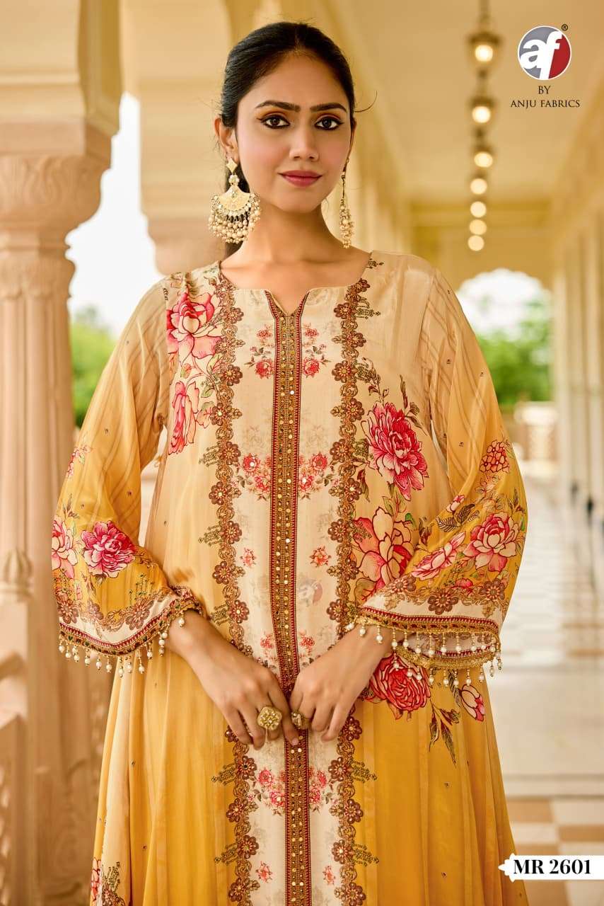 Design No MR 2601 MR 2602 by Anju fabric Designer Kaftan with Wide Pant kurti collection manufacturer Surat