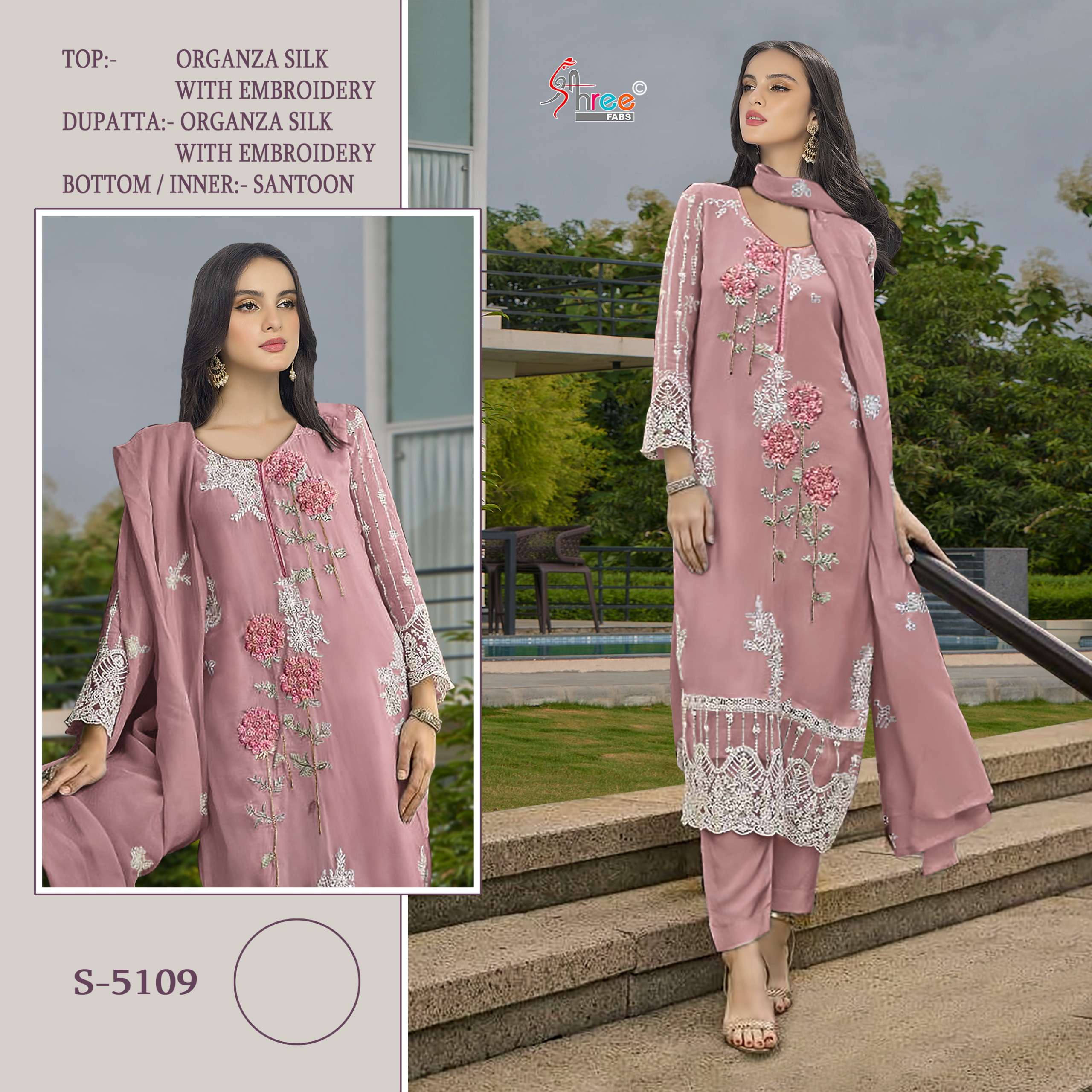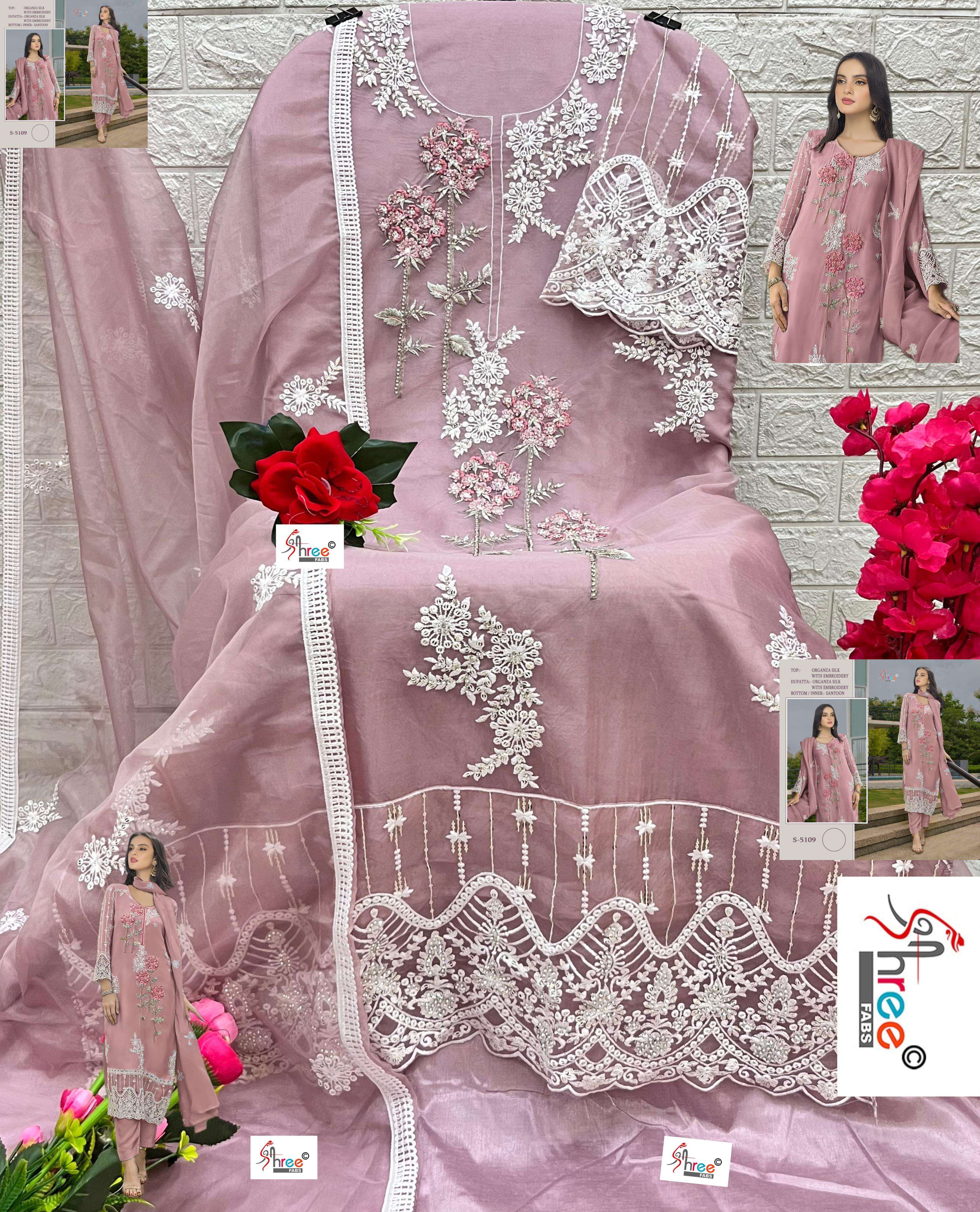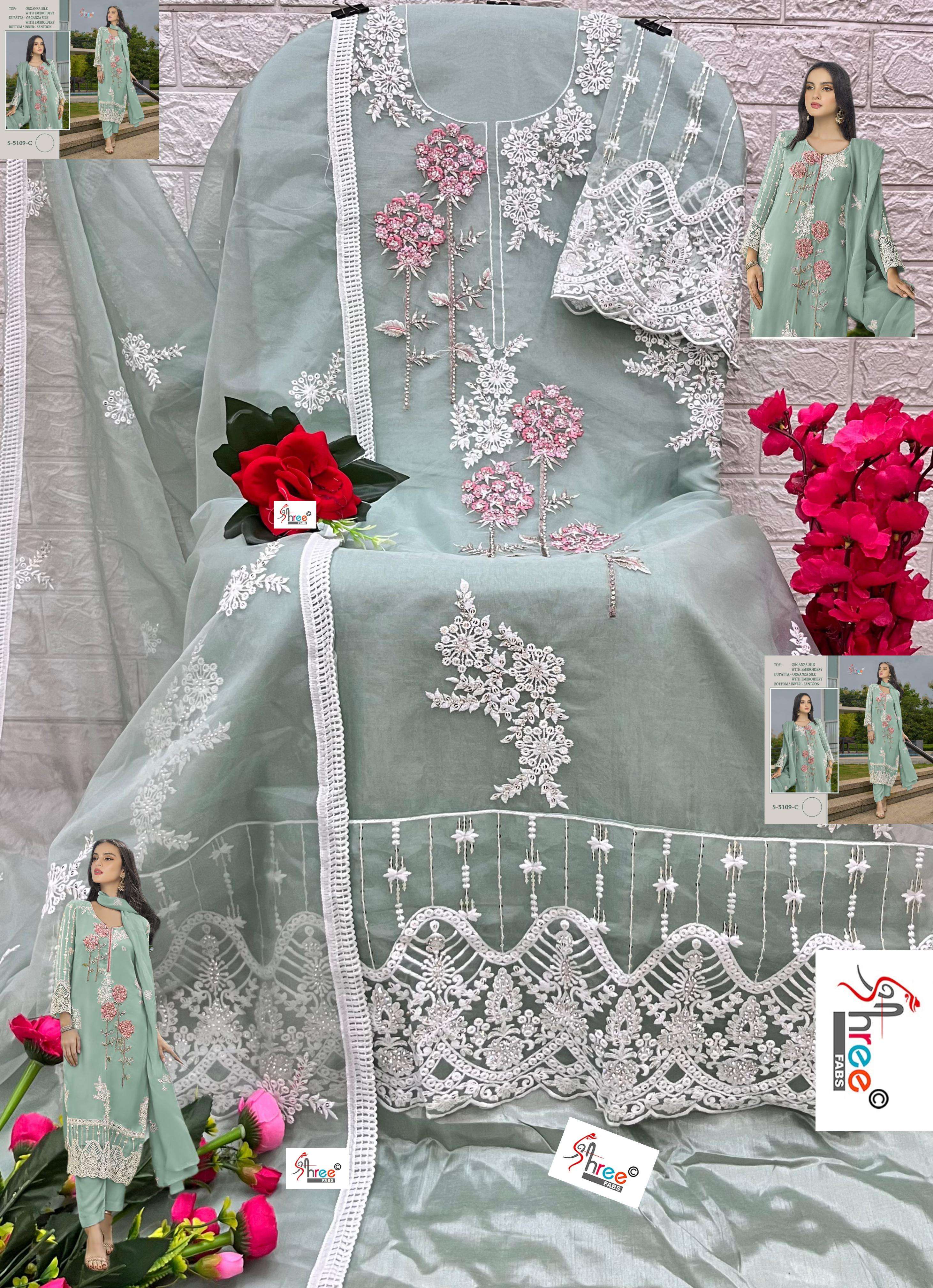 DESIGN NO S 5109 by shree fab organza silk suit collection manufacturer surat