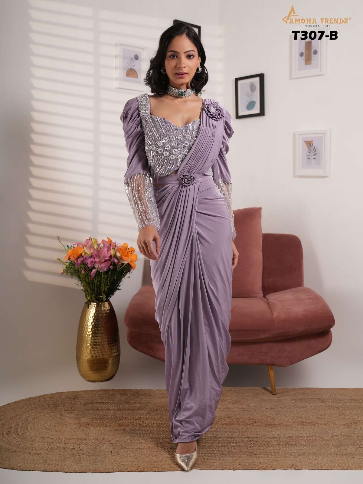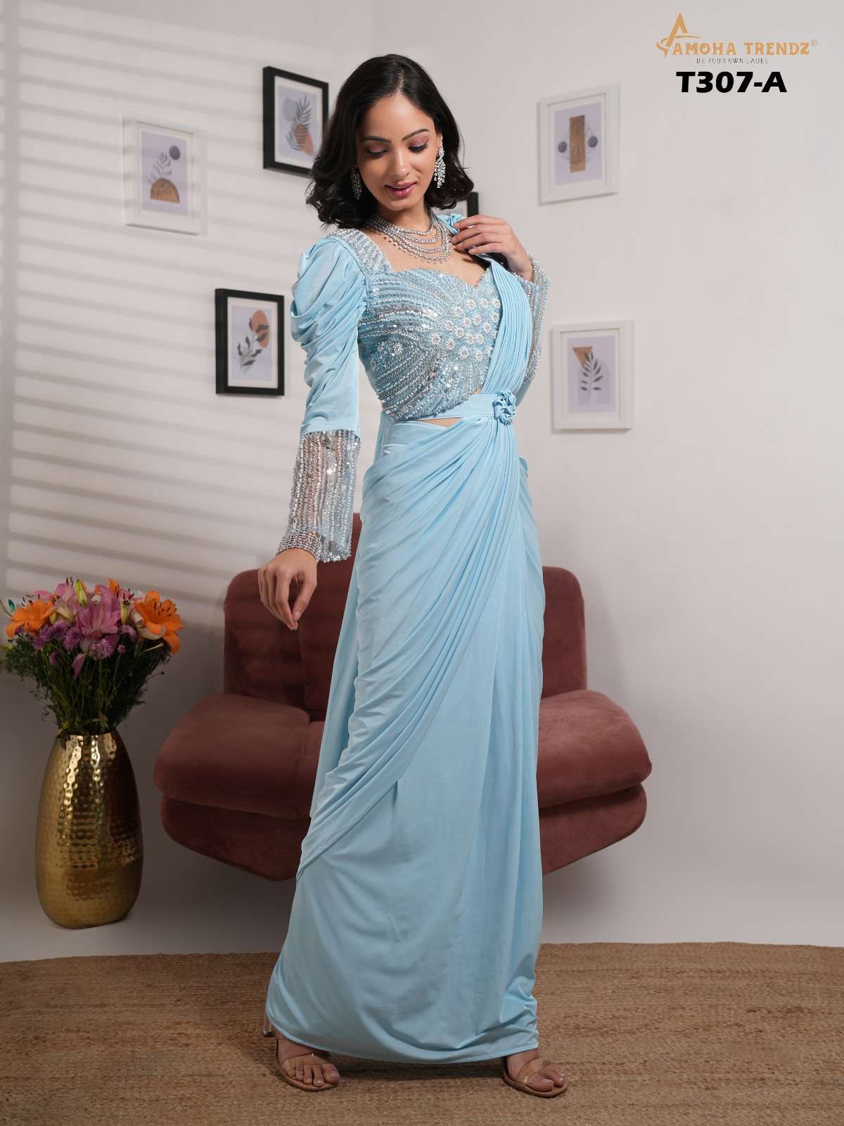 DESIGN NO T307 by amoha trendz READY TO WEAR LYCRA SAREES collection manufacturer surat