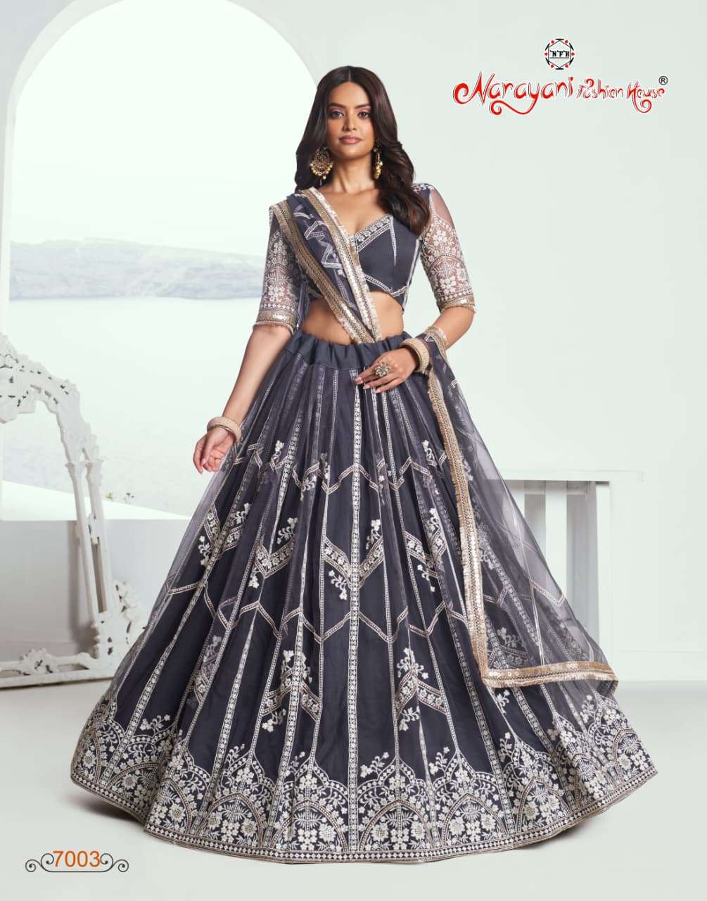 Buy Online Design Number 7003 A B C D by narayani fashion Lehenga collection manufacturers surat 5 Pcs of Full Catalogue at Wholesale Price. Looking for Design Number 7003 A B C D by narayani fashion Lehenga collection manufacturers surat Full Catalouge at Best Price? Buy Now Design Number 7003 A B C D by narayani fashion Lehenga collection manufacturers surat at Wholesale Rate of Rs 13925 with Total 5 Pcs from authroized dealer and supplier of NARAYANI FASHION Brand. Cost of Each piece is just only Rs 2785 which is very low and affordable price to resale the product in your retail store ,This is Surat based Wholesale Supplier & Dealer of NARAYANI FASHION Brand. Click on Brand name to Know more about NARAYANI FASHION Brand's products.Call or Whatsapp on 9898838984 for booking or enquiry