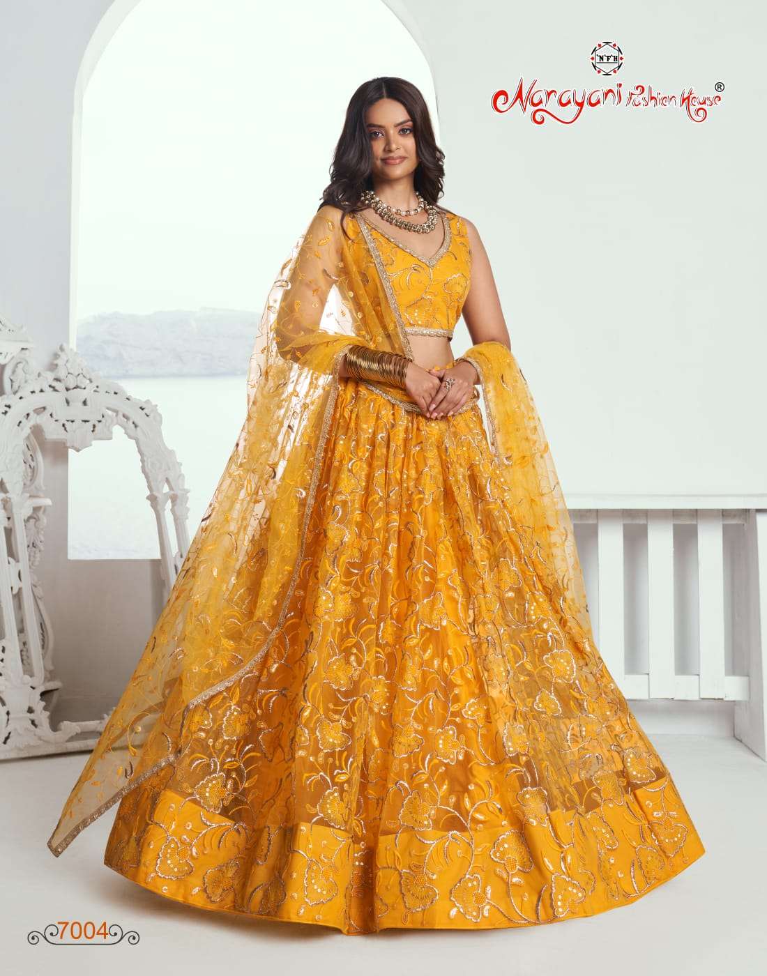 Buy Online Design Number 7004 Lehenga Choli collection manufacturers surat 1 Pcs of Full Catalogue at Wholesale Price. Looking for Design Number 7004 Lehenga Choli collection manufacturers surat Full Catalouge at Best Price? Buy Now Design Number 7004 Lehenga Choli collection manufacturers surat at Wholesale Rate of Rs 2885 with Total 1 Pcs from authroized dealer and supplier of NARAYANI FASHION Brand. Cost of Each piece is just only Rs 2885 which is very low and affordable price to resale the product in your retail store ,This is Surat based Wholesale Supplier & Dealer of NARAYANI FASHION Brand. Click on Brand name to Know more about NARAYANI FASHION Brand's products.Call or Whatsapp on 9898838984 for booking or enquiry