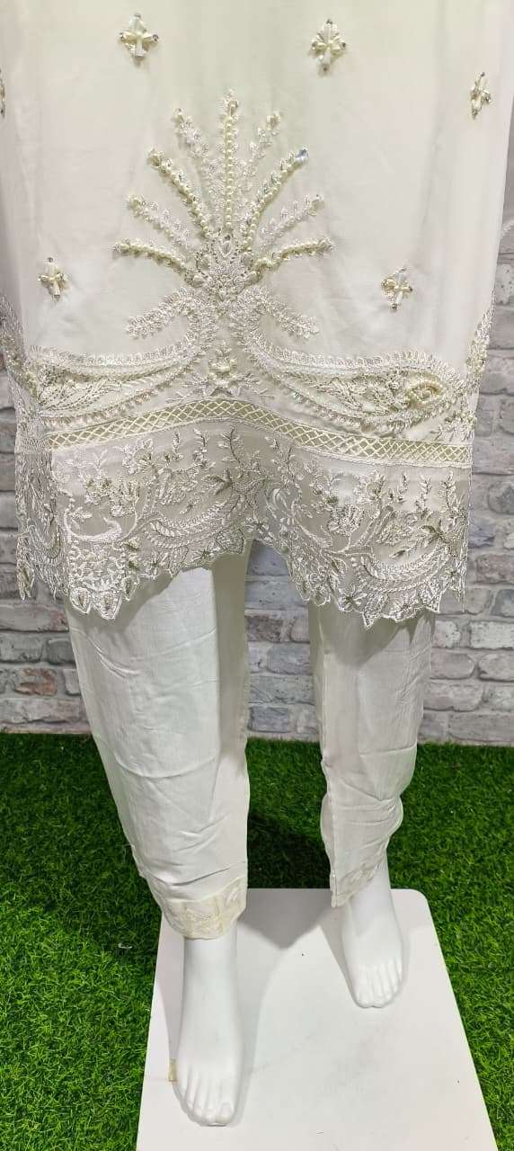 ➖➖➖➖➖➖➖➖ 💕💕*Description*💕💕 〰〰〰〰〰〰〰 *Designer Stylish Top with Elegant Embroidery and Pure Handwork, Delicate Cutwork on Daman. Paired With Viscose Silk Pants With Patch and a Georgette Dupatta with Boring Embroidery and Cutwork*