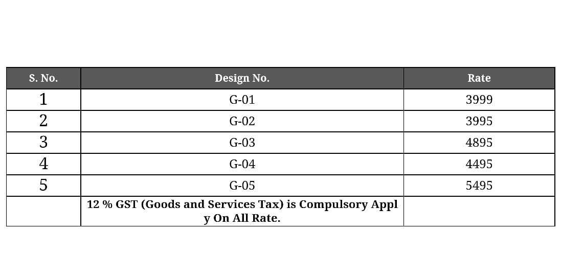 Brand - Naree. Type - Gown . Series - G-01 to G-05. * Set & Loose & Multiple * Delivery 2-3 Days . Book your order now . Book on whatsapp +919898838984 |
