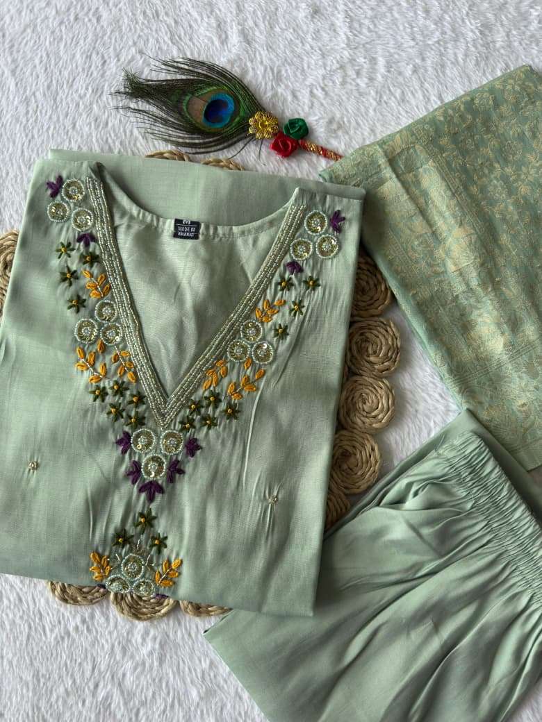 ✨ Fabric: Premium Roman Silk ✨ Colour: C Green ✨ Dupatta: Heavy Quality Nylon Muslin Jecard with Latkan (2.30 Mtr) ✨ Work: Hand Work ✨ Inner: Cotton Inner (Full) ✨ Size: M(38), L(40), XL(42), XXL(44)
