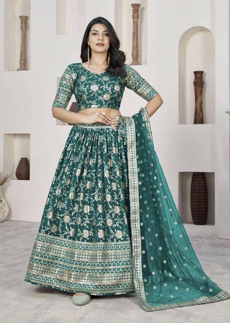 - *Fabric:* Faux blooming with sequins embroidered work and designer lace border - *Length:* 2.25 meters
